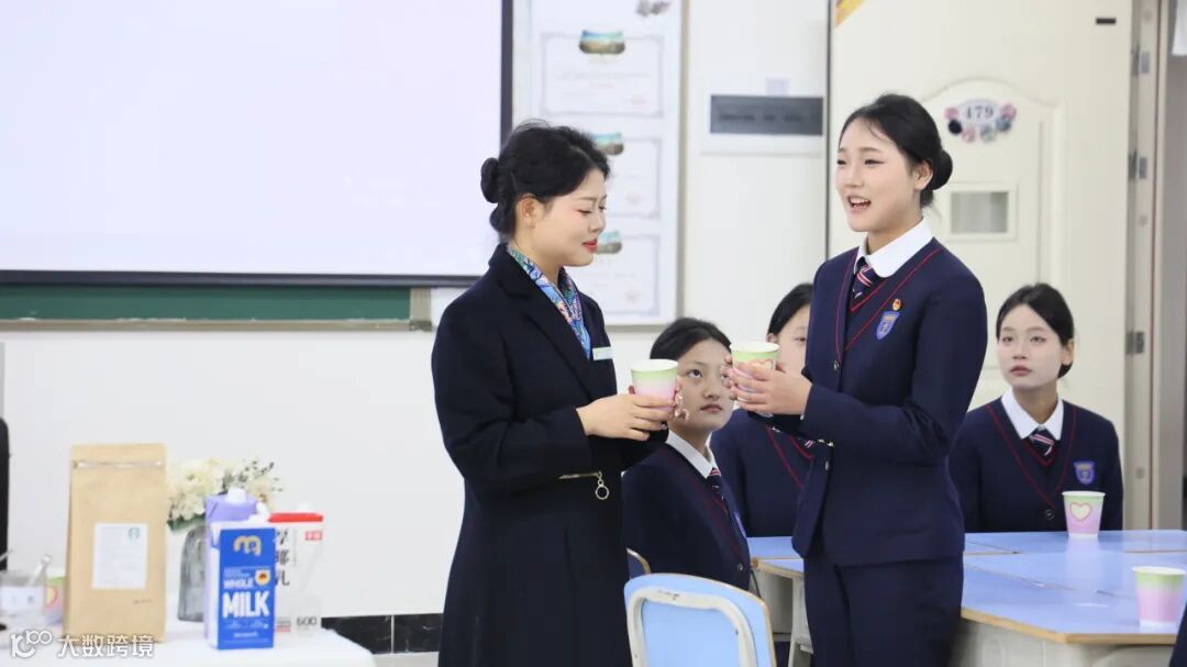 在聆听完老师对于此次活动的意义和流程讲解后,女生们开始了“调配”之旅。指尖游走在小料间,有的同学大胆尝试辣椒面+方糖的"冰与火之歌",有的用椰乳绘出创意图案,有人结合茶水的清淡,寻求丰富的口感……