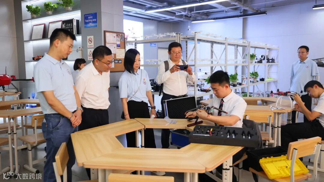 在参观过程中,我校教师李婷婷就环境育人理念、各专业实训室建设情况、中高职一体化培养模式等作了简要介绍。她表示,学校始终坚持将专业建设与实景实训相结合,为学生提供贴近行业实际的学习环境,有效提升其职业技能和综合素养。值得一提的是,嘉宾一行在我校无人机专业实训室,现场观摩了学生进行真机操作、任务执行的实景教学,学生所展现出专业性、规范性等为其留下深刻印象。