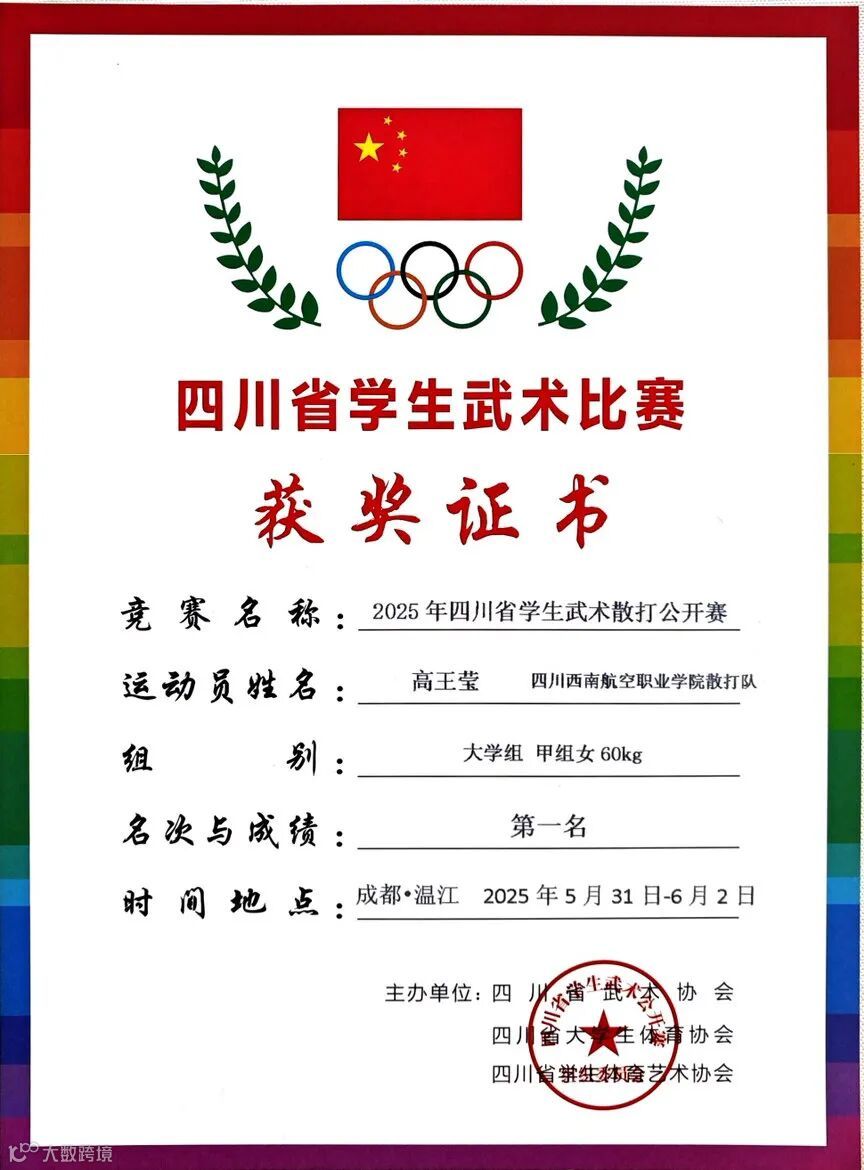 奖牌凝聚拼搏汗水,荣誉助力青春成长,这是我院连续五年在该项赛事上收获荣誉。此次佳绩的获得,离不开学院各方的支持和配合,离不开每位参赛同学以及带队教练的专业指导。这不仅为参赛师生提供了切磋交流的机会,更反映出了我院散打队的高超水平,体现出民航空中安全保卫专业技能培养走在四川省前列以及民航空中安全保卫专业人才培养的育人实效。