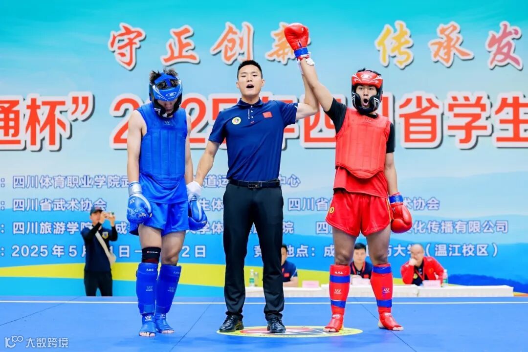 近日,由四川省武术协会、四川省大学生体育协会、四川省体育艺术协会共同主办的“大业亨通杯”2025年四川省学生武术散打公开赛在成都中医药大学成功举办。我院散打代表队经过数十场紧张激烈的比拼,不畏强敌,敢打敢拼,拿下4个第一名、1个第二名、6个第三名,最终斩获团体总分一等奖,信林琪老师荣获“优秀教练员”称号,这一成绩再度刷新了我院在该项赛事上的历史记录。