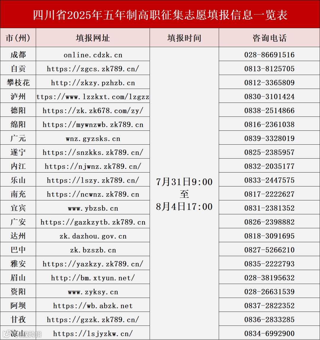 本次征集志愿时间为7月31日9:00-8月4日17:00(具体填报时间以各市州招考办公布为准)。