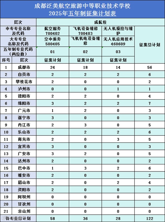 报考成都泛美航空旅游中等职业技术学校五年一贯制