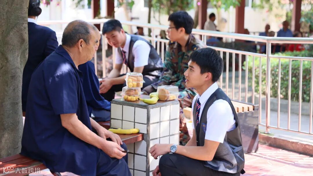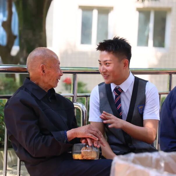 演出结束后,初夏的阳光正好。同学们搀扶着长者们来到庭院里晒太阳。绿荫下的长椅上,几个女生正轻声细语地陪着爷爷们唠家常,不时传来阵阵笑声;草坪边的石凳旁,男生们认真倾听着爷爷们讲述年轻时的故事,眼神里满是敬佩。