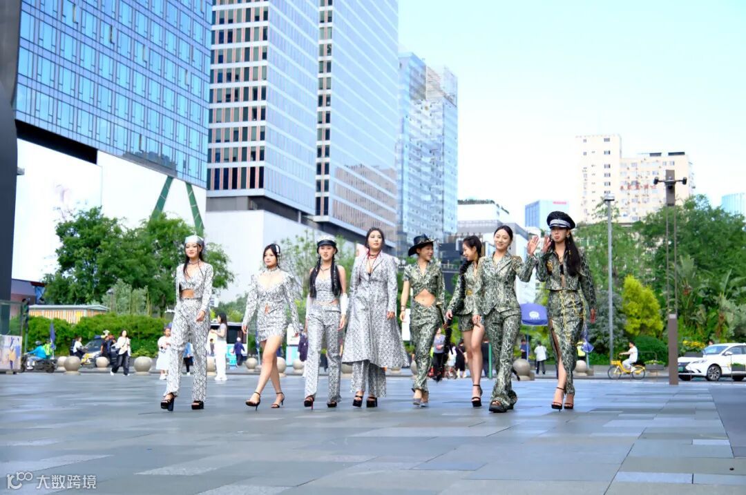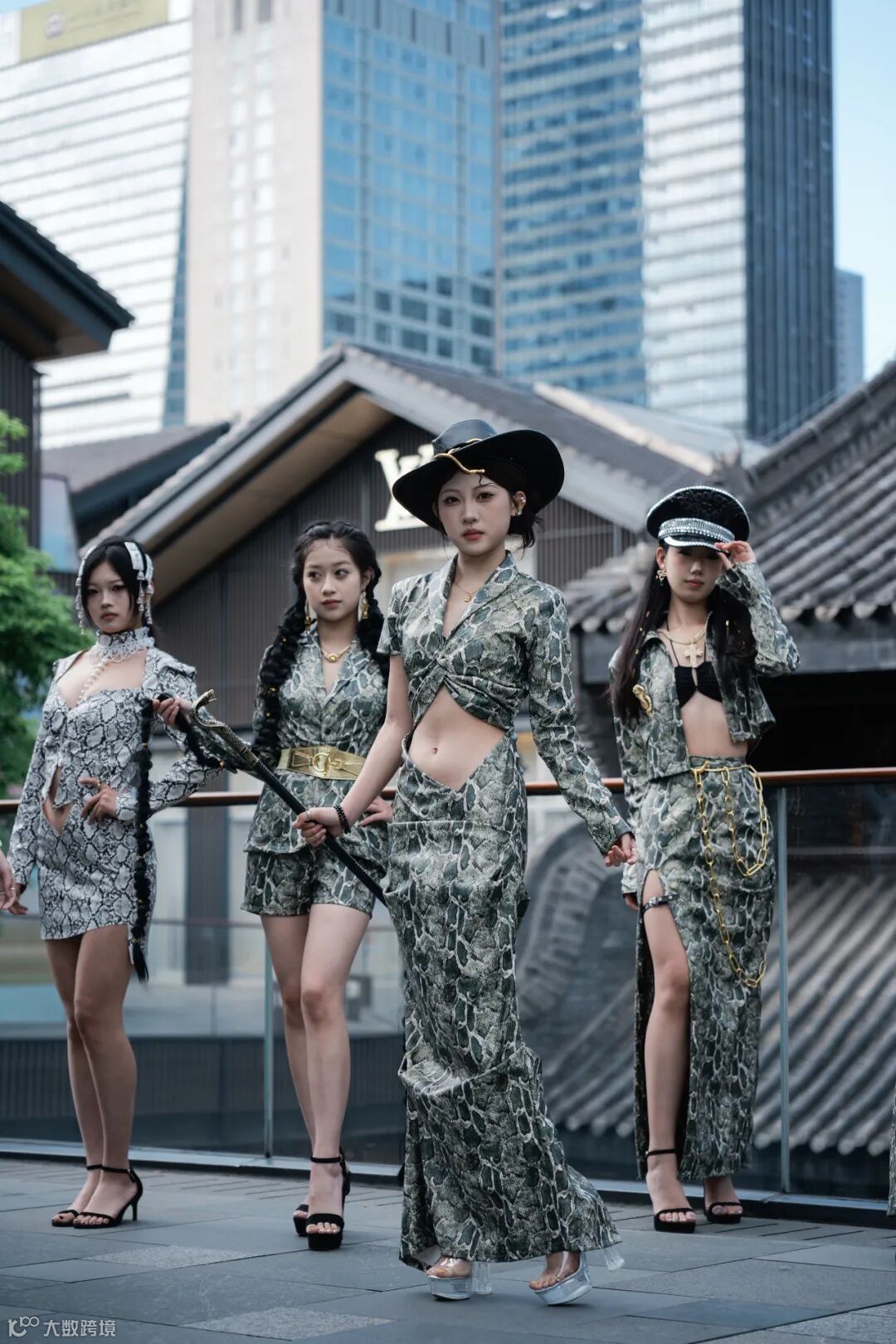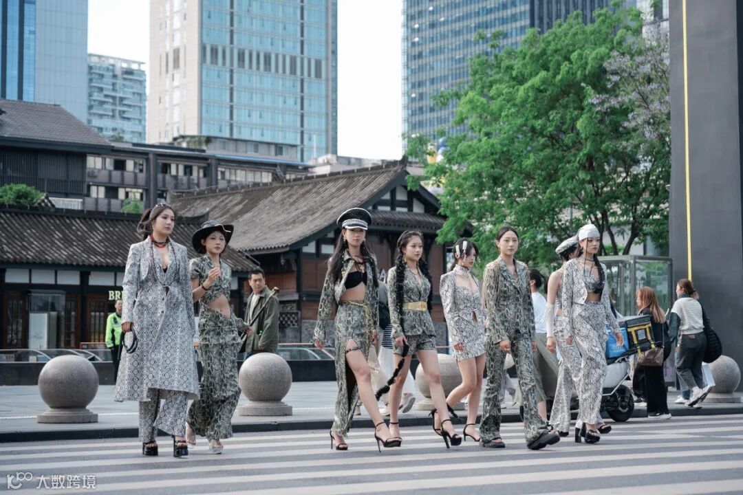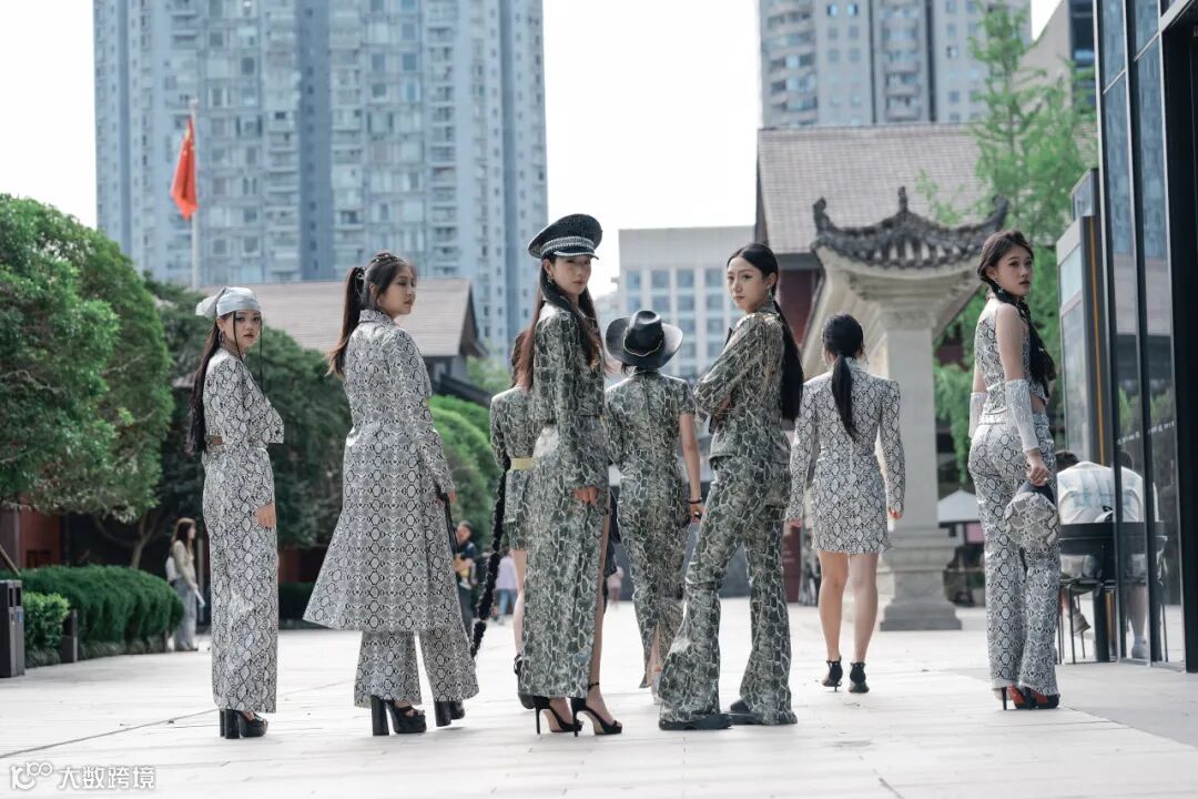 蛇纹元素服装撕裂常规,大胆造型与野性纹路折射出时尚锋芒与不羁态度,当同学们踏着冷冽的地砖行过,蛇纹的流动肌理与太古里镜面建筑的光影形成奇妙共振,天然野性张力与都市摩登基因在此刻共生共舞。