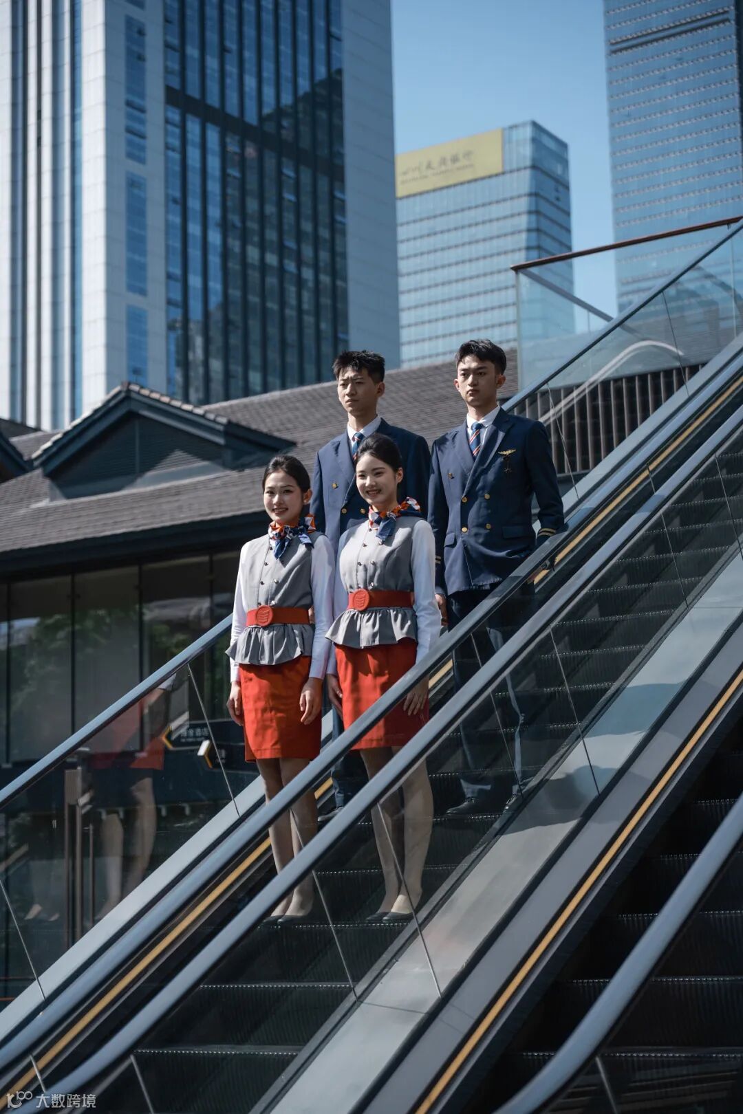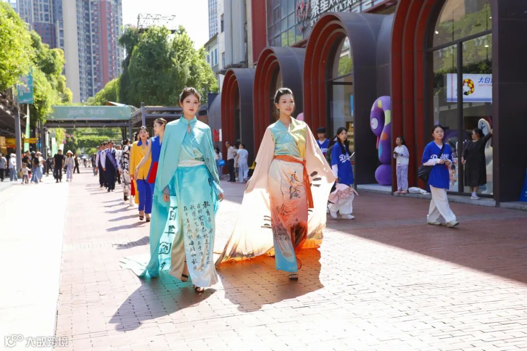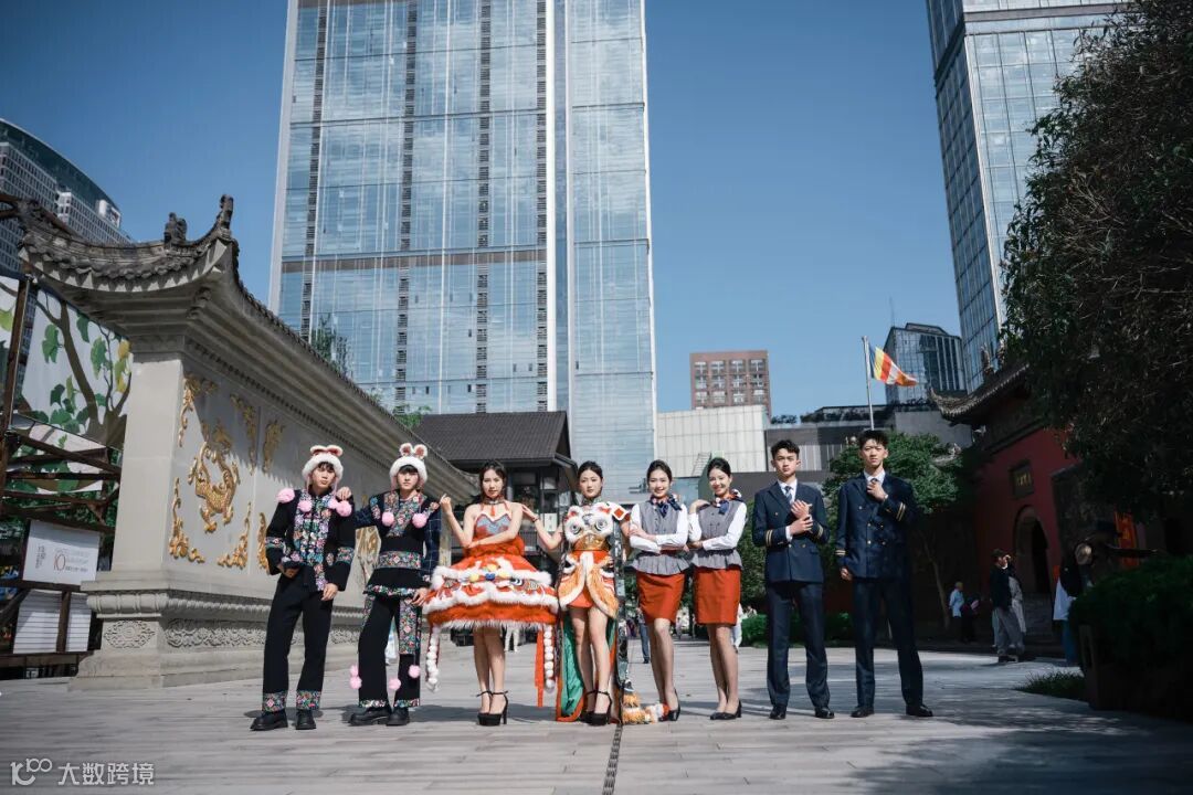 初夏的太古里,波浪形玻璃幕墙在阳光下泛着银灰色金属光泽,墙面上跳动着蓝紫色的光影。身着创意服饰的西航快闪队伍,一经登场,便引爆视觉焦点。