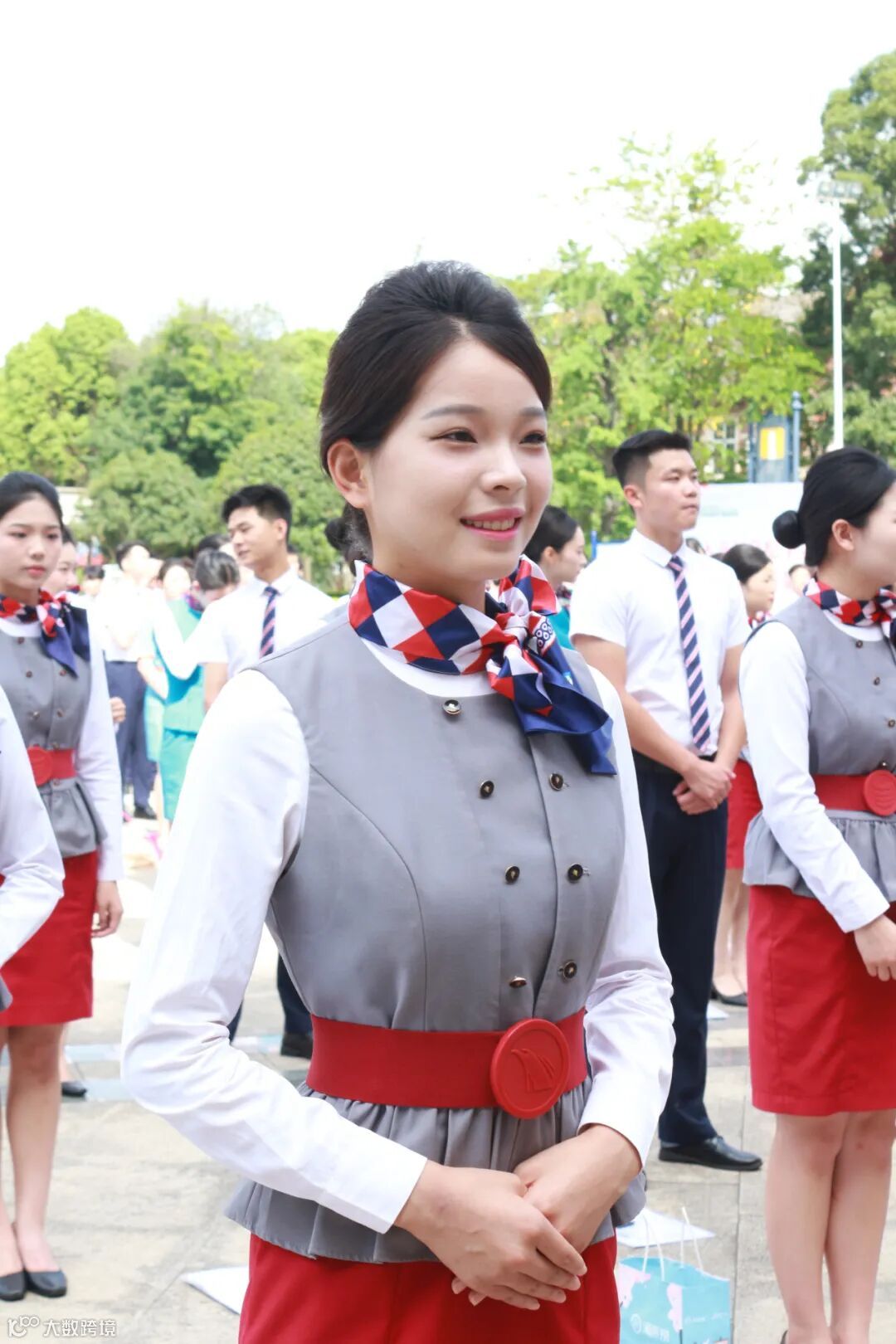 作为第一道关卡,海选侧重于考察仪容、仪表、仪态等职业形象。同学们在太阳广场按秩序排列成队,精致的妆容及整洁的职业装,展示了“高度职业化的民航员工”的西航风采。海选结束后,通过身高筛选的同学进入初试环节。