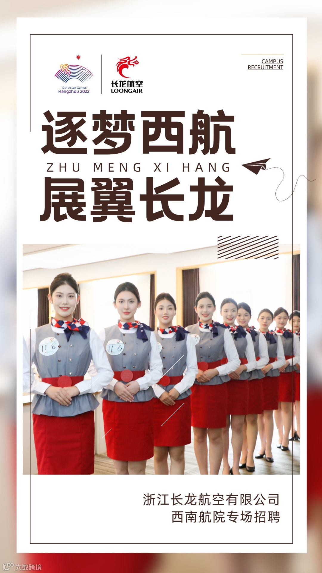 近日,浙江长龙航空有限公司(以下简称“长龙航空”)专场招聘会在西南航院如期举行,此次招聘岗位为空中乘务岗及安全员岗。作为浙江省唯一的本土客货综合公共运输航空公司和杭州亚运会官方航空客运服务合作伙伴,长龙航空“春雨式”真情服务理念以及位居杭州的区位优势吸引了众多心怀民航梦想的学子报名参加面试。最终,经过层层选拔,共有80名同学通过复试,即将开启梦想之旅。