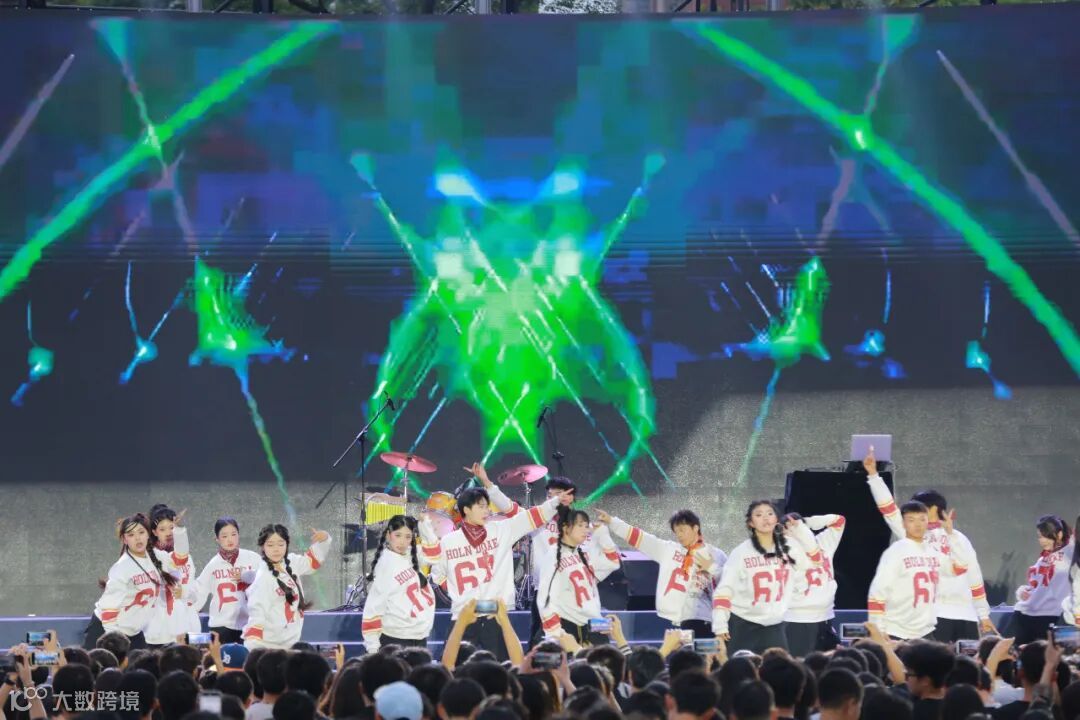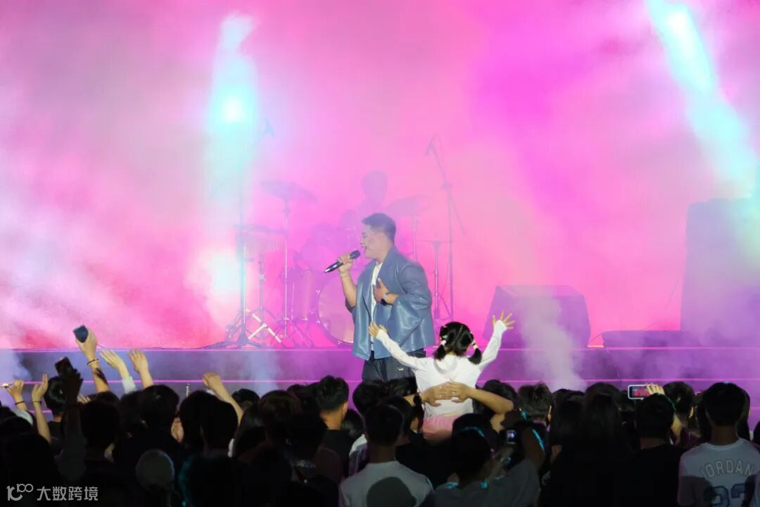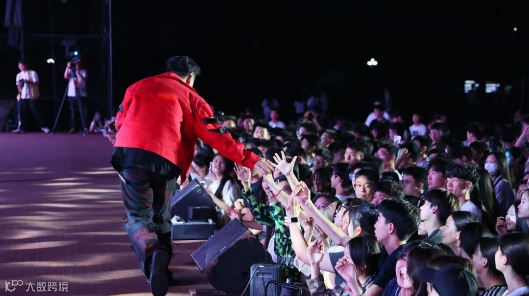 “举起双手,跟紧这节奏!”极具节奏感的即兴喊麦点燃全场。台下近万名观众跟随指令挥舞双手,声浪如潮,主唱们纷纷登场,用嗓音征服夜空,建造着澎湃的“青春磁场”。