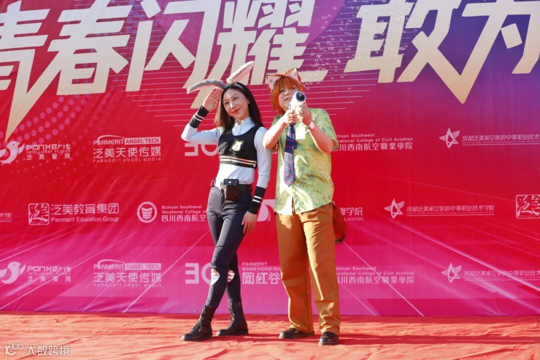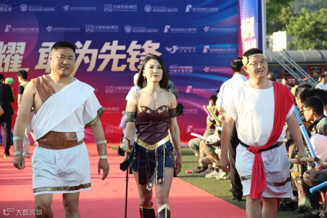 领导们一改平日严肃形象,向两侧师生亲切挥手致意。更有老师装扮成巾帼战神花木兰、埃及法老、埃及艳后、斯巴达勇士等东西方传奇人物以及超级玛丽、尼克和朱迪二次元,“反差感”的惊喜亮相瞬间点燃气氛。