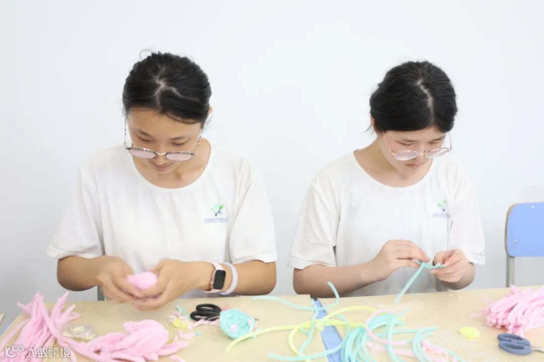 “扭一扭、转一转”,只需要几根扭扭棒就可以制作出各种形状。学生们纷纷发挥自己的想象力,将一根根普通的扭扭棒弯折成各种图案,如动物、花朵等。在压花台灯制作区域,只见先用干花、树叶等装饰物点缀,再用颜料上色,最终形成一盏盏精美的花灯。整个过程充满了欢声笑语,老师和同学们都乐在其中。