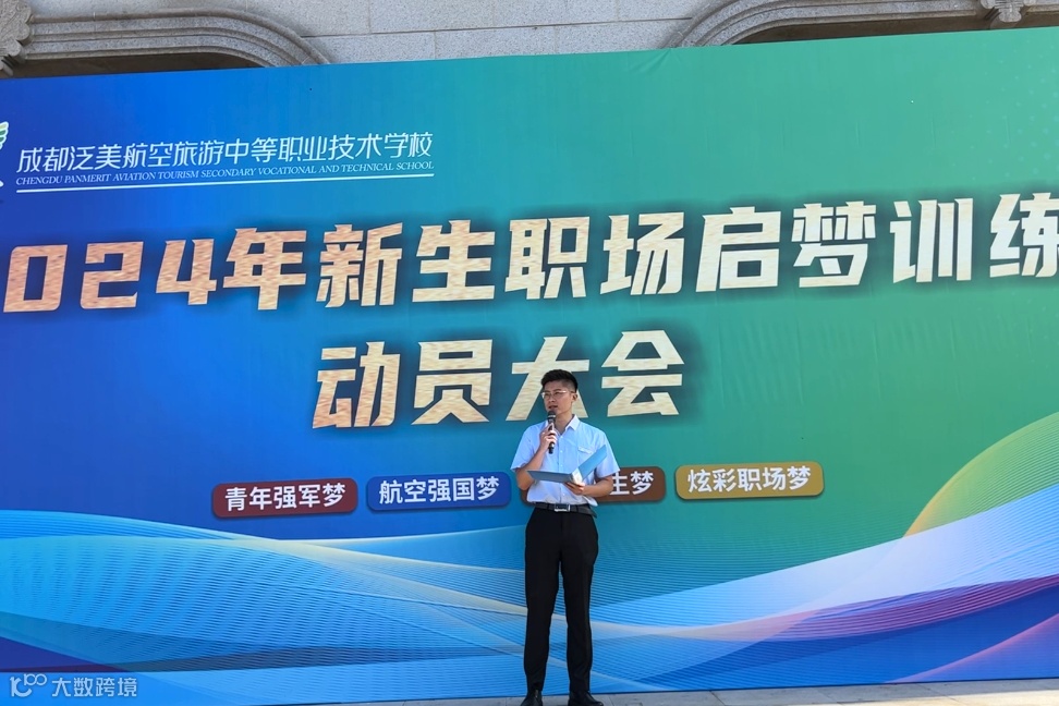 在仪式的尾声阶段,陈平副校长宣布:成都泛美航空旅游中等职业技术学校,2024年新生职场启梦训练,正式开始!