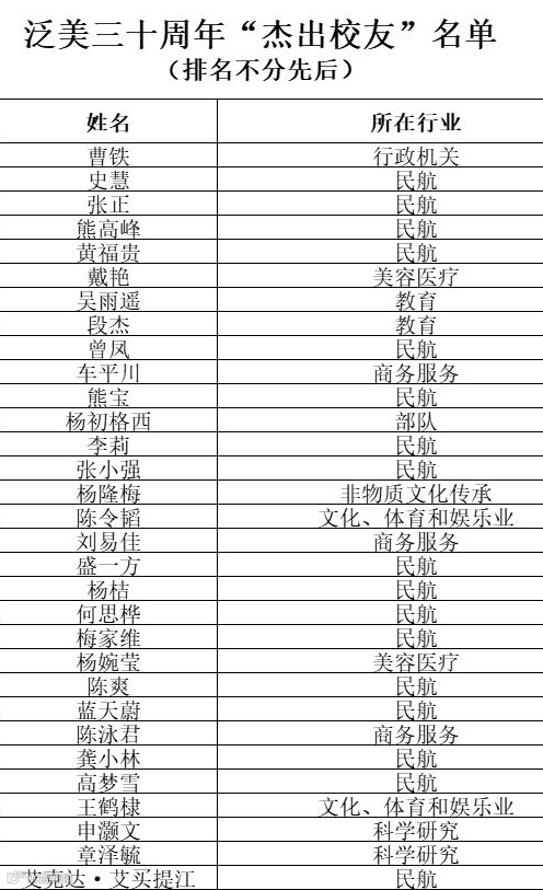 他们从青涩少年到行业翘楚,栉风沐雨,谱写华章;他们或在民航领域坚守奋进,构筑民航强国梦;或在商界叱咤风云,引领经济发展;或在公共事业中默默奉献,促进社会和谐。他们的名字,是泛美教育卓越品质的生动注脚,是“传承善与美德,传递爱与快乐”精神的赓续传承。