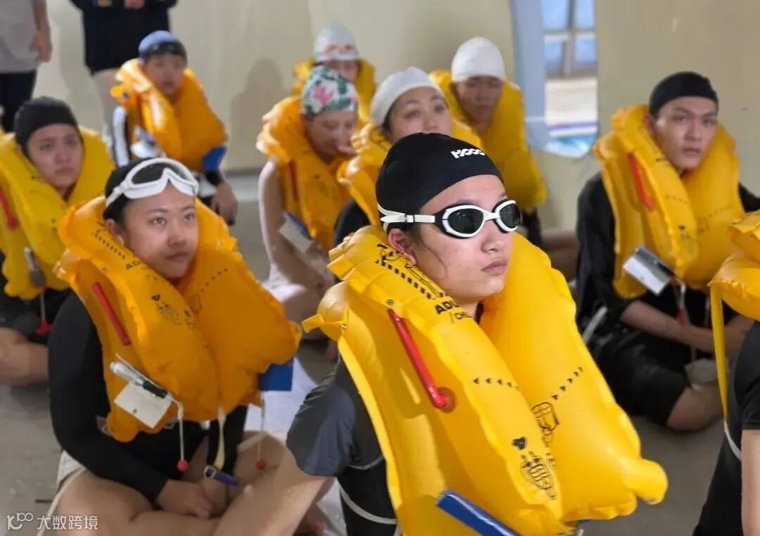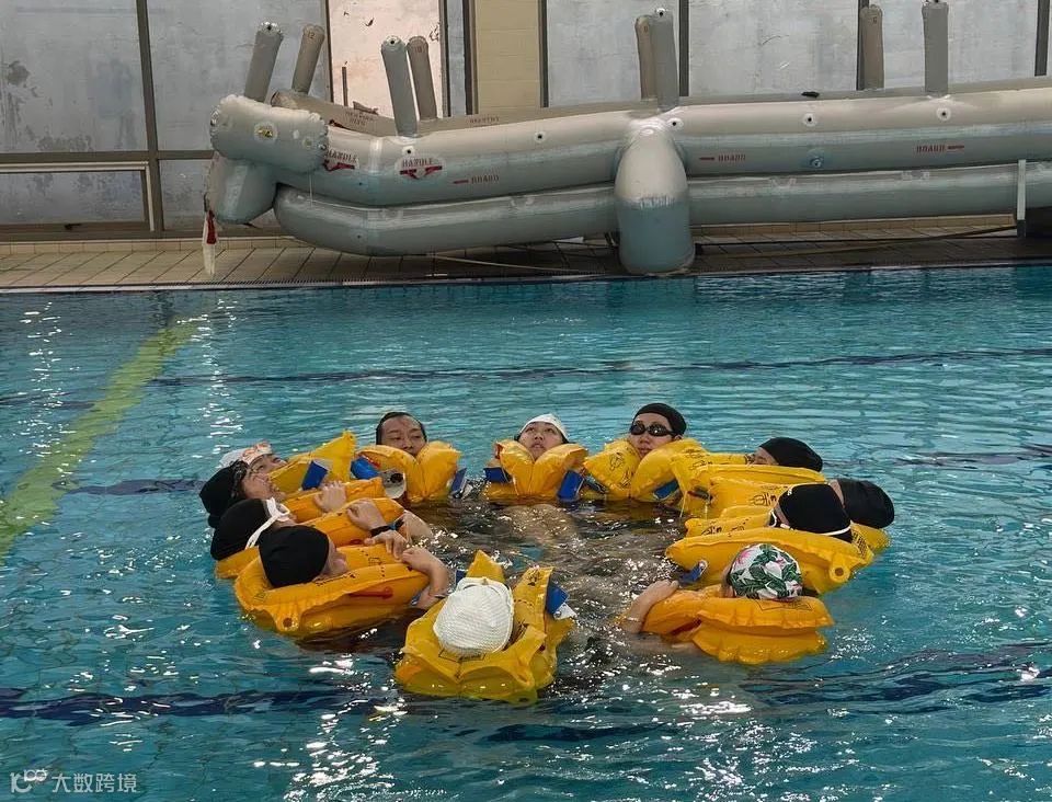 随着应急撤离口令响起,穿戴好救生衣的同学们绷紧安全这根弦,快速有序跳水,并完成引导旅客撤离、水中互救和集体取暖等流程,在高度还原的模拟场景中亲身体验水上紧急迫降,体会安全背后的职业责任。