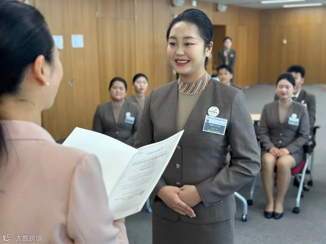 迈技能进阶、获专业成长。同学们参观了韩亚航空本部及实训中心,沉浸式体验五星航司乘务员培训标准,并参加了水上紧急迫降训练、模拟客舱服务、红酒及礼仪学习等专业技能培训课程。