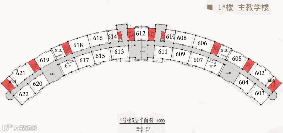 以下为第一教学楼1~6楼教室分布图