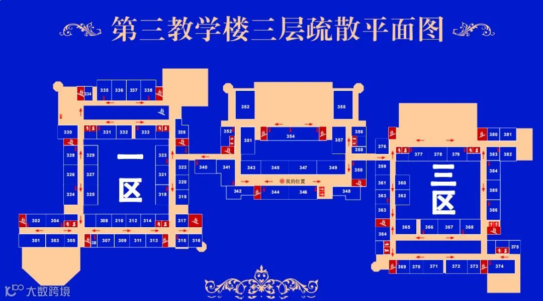 以下为第三教学楼1~5楼教室分布图
