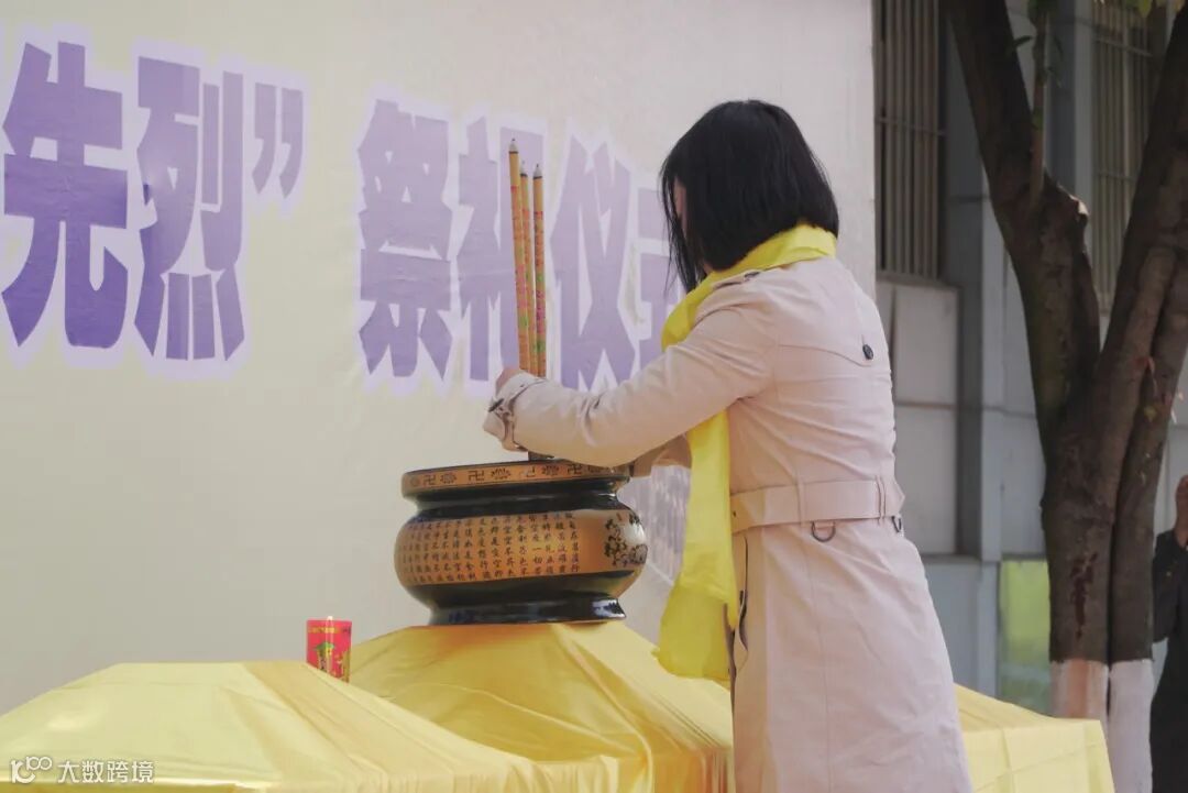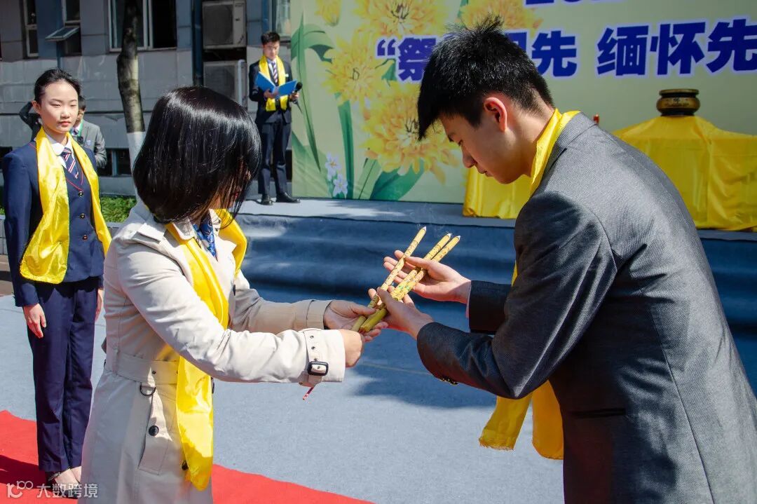 校长陈敏发表讲话:“希望通过这种形式,寄托对家族祖先们,替我们负重前行、不惜献出生命的英雄们深深的敬仰之情,浓浓的感激之情。”并向同学们提出希望,“我们感念先祖留给我们的物质财富和精神财富,也要不断完善自己的人格修为,尊重生命,敬畏生命,爱护自己,关爱家人和同学,做一名合格的中华文明的传承者。”