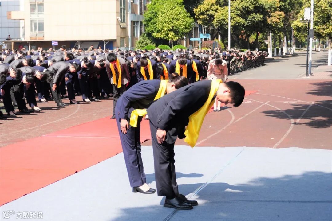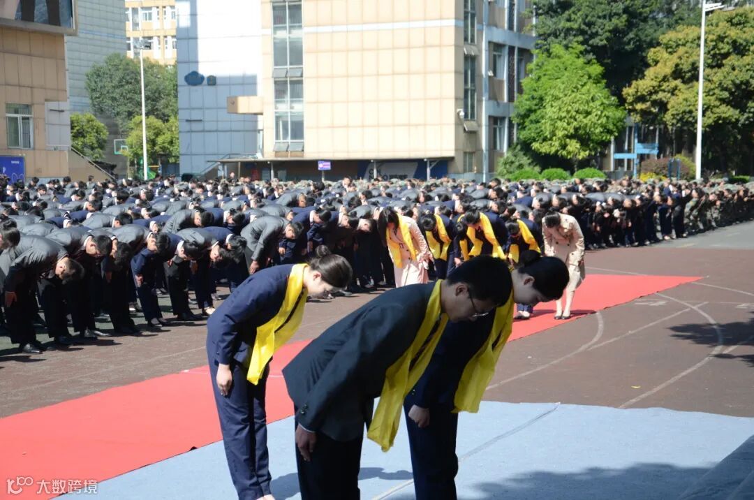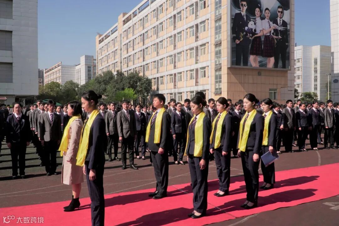 仪式现场,全校师生身着整洁职业装,庄严肃立,在领诵人的带领下集体吟诵祭文:“赤县神州,毓秀钟灵。维我炎黄先祖,开辟华夏宏基……”