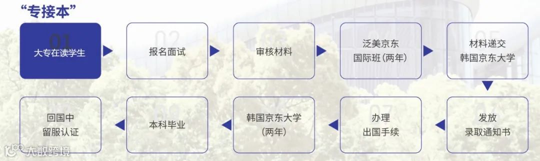 通过泛美、京东联合考核,第一年即可获得韩国京东大学全日制本科学籍,进入泛美京东大学国际班学习,轻松实现海外全日制本科梦想。