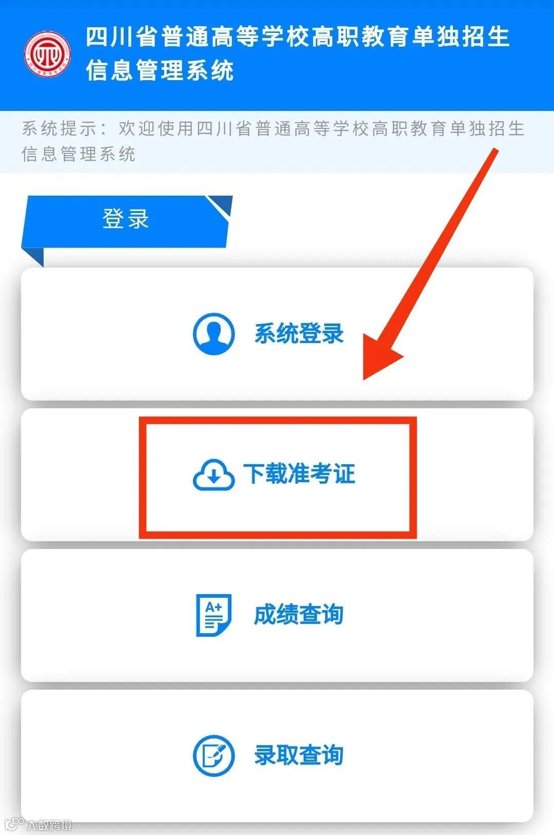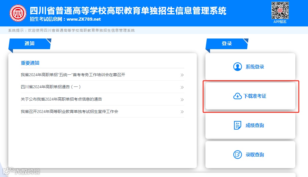 进入四川省普通高等学校高职教育单独招生信息管理系统官方网站(https://dzwb.sceea.cn/),自行下载并使用A4幅面白纸打印准考证。