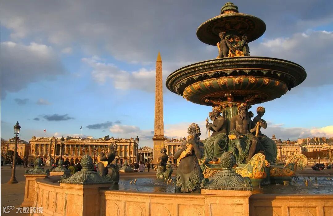 广场正中心矗立着一座从埃及运来的、有3400多年历史的埃及方尖碑。而广场上于19世纪中叶增设的两个场景宏大的喷泉,一直是人们喜欢驻足的地方。