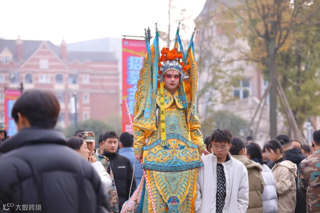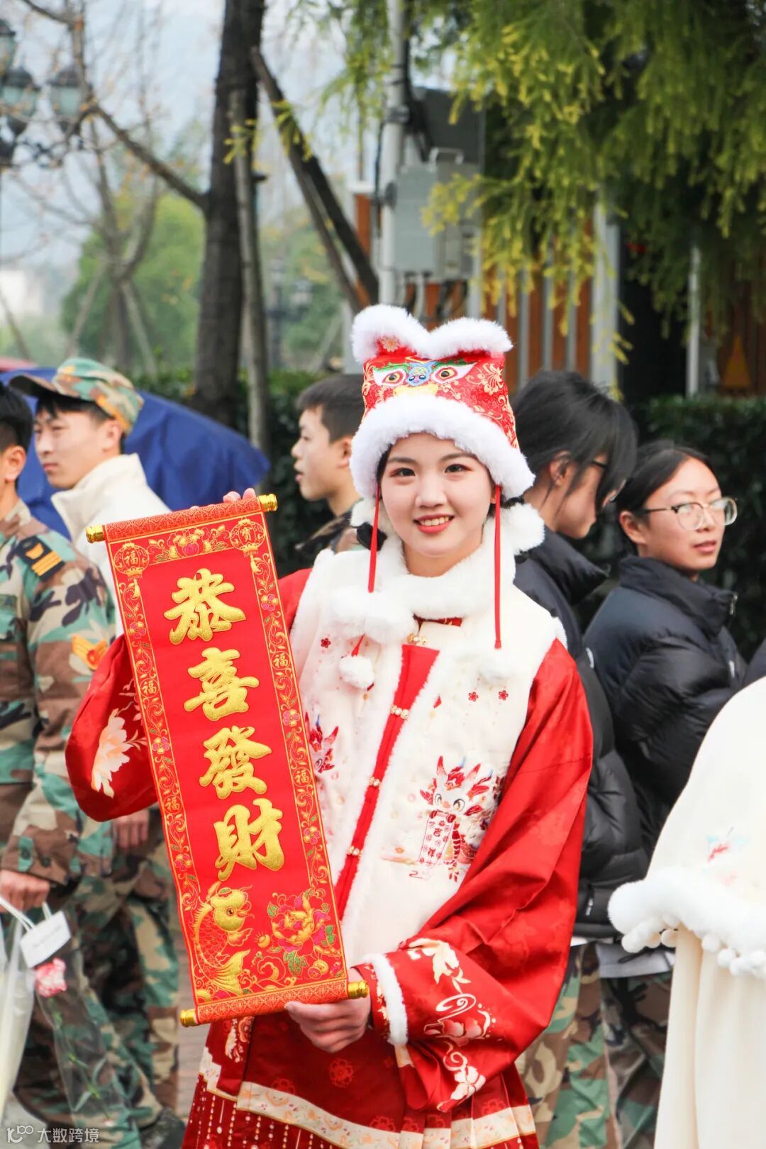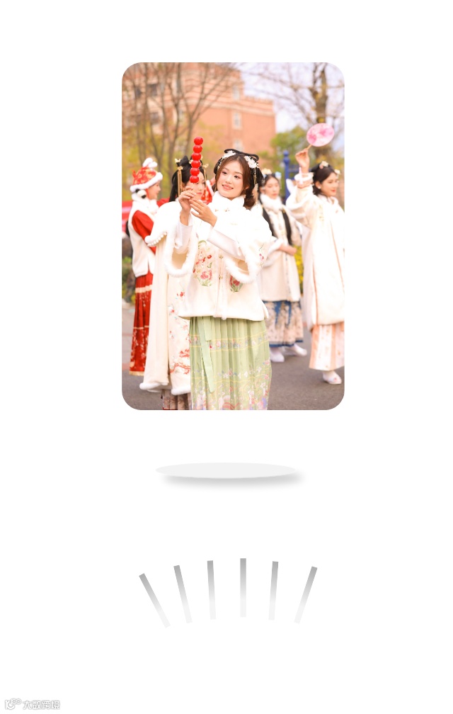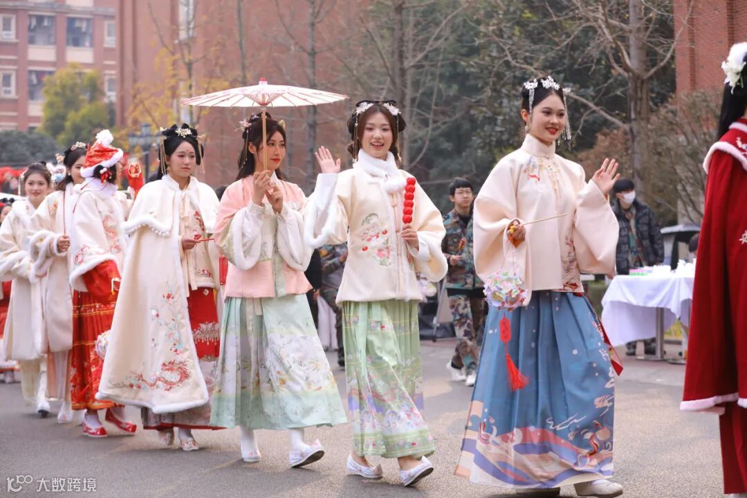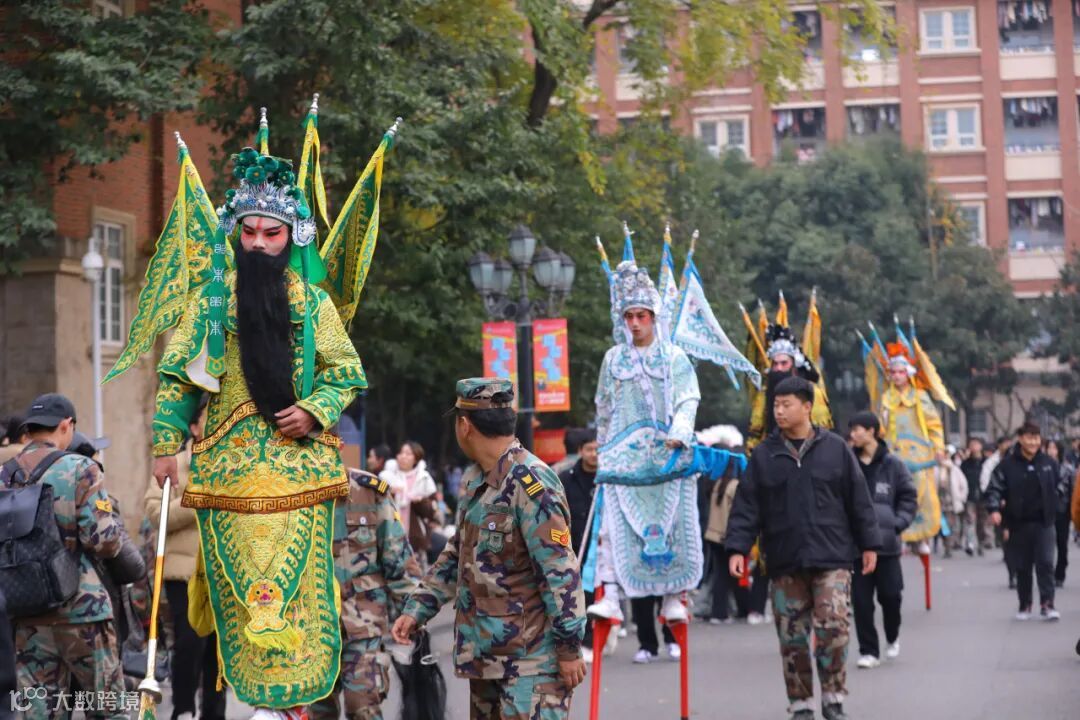 踩高跷、汉服女团、双人舞狮……神秘的国风游行队伍一登场,便引起了同学们的驻足侧目,欢呼声更是此起彼伏。