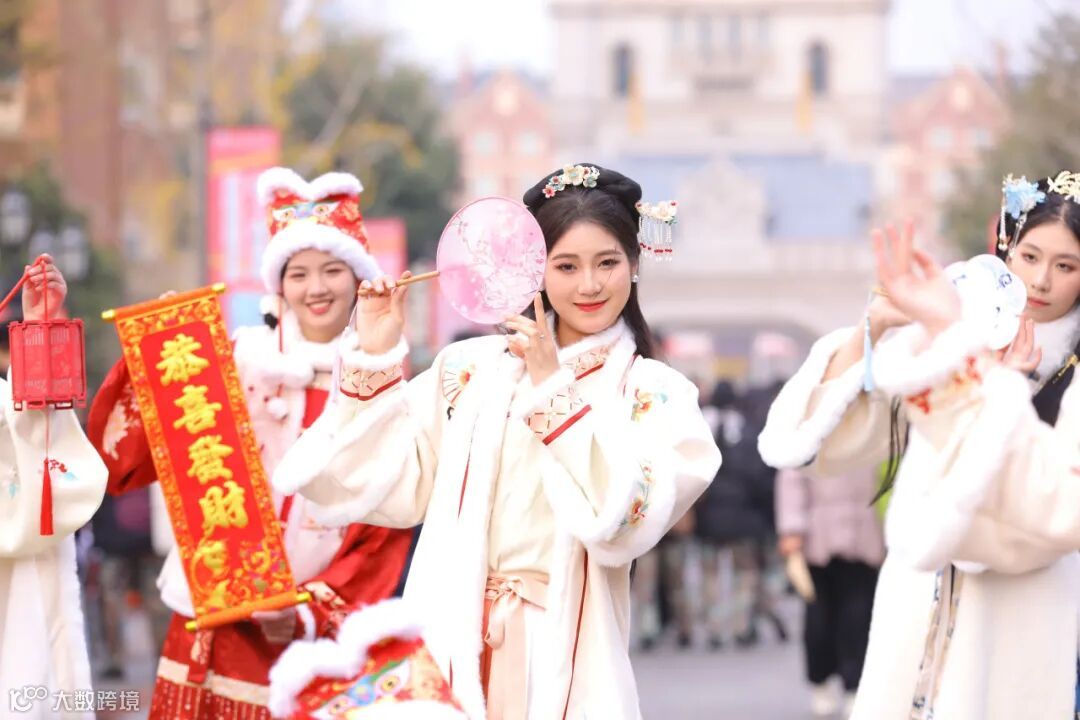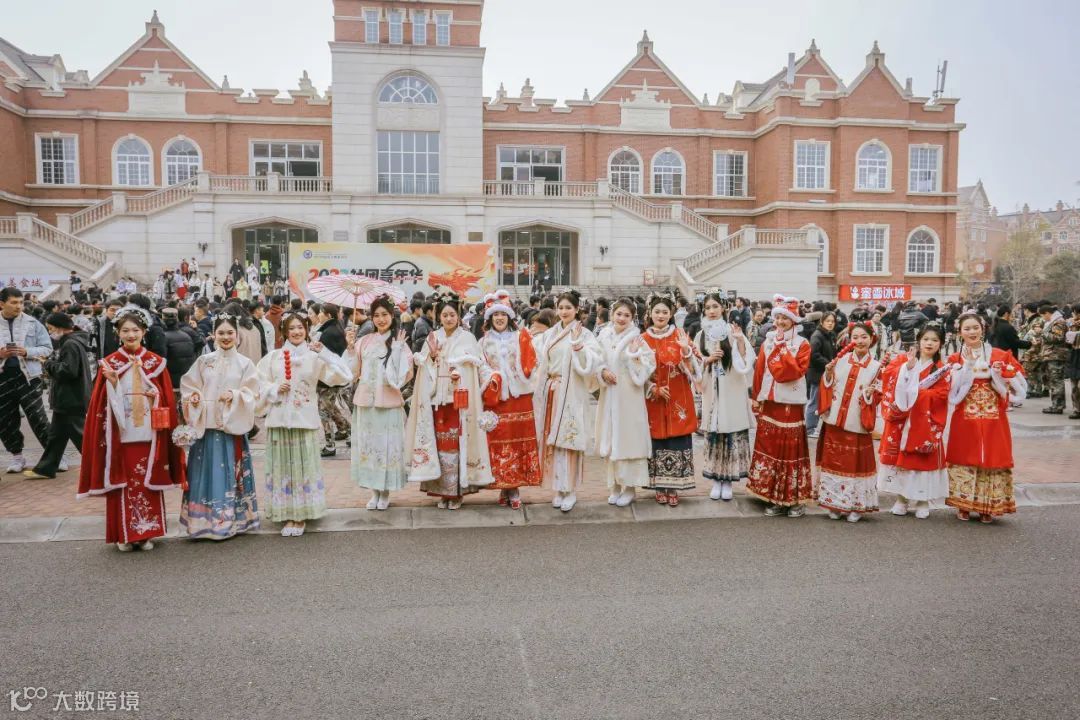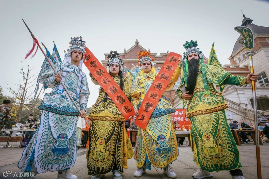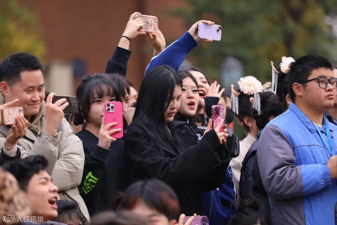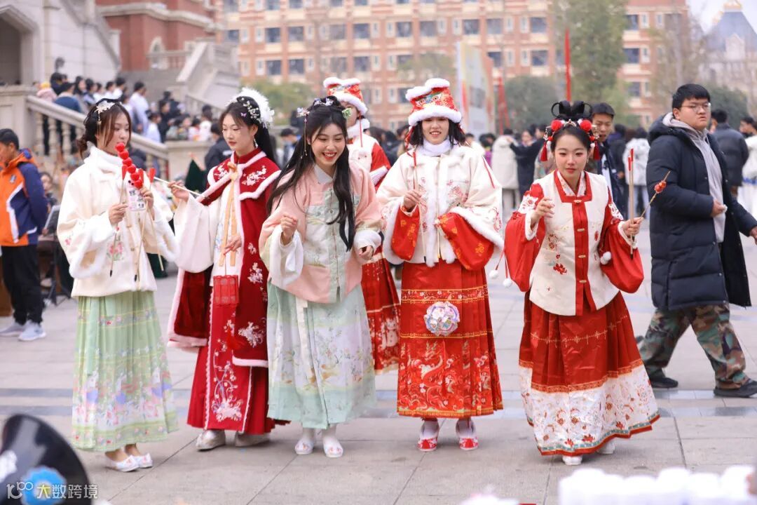 踩高跷、汉服女团、双人舞狮……神秘的国风游行队伍一登场,便引起了同学们的驻足侧目,欢呼声更是此起彼伏。