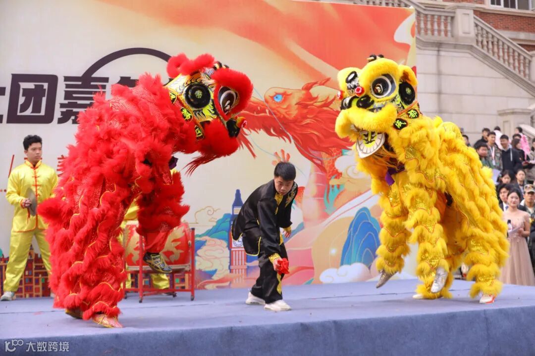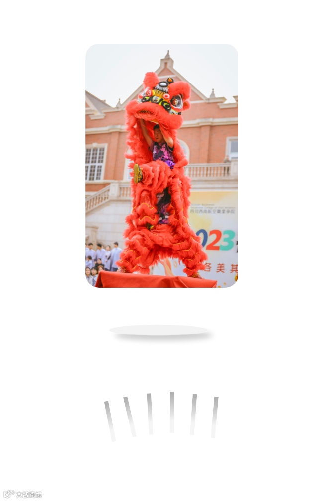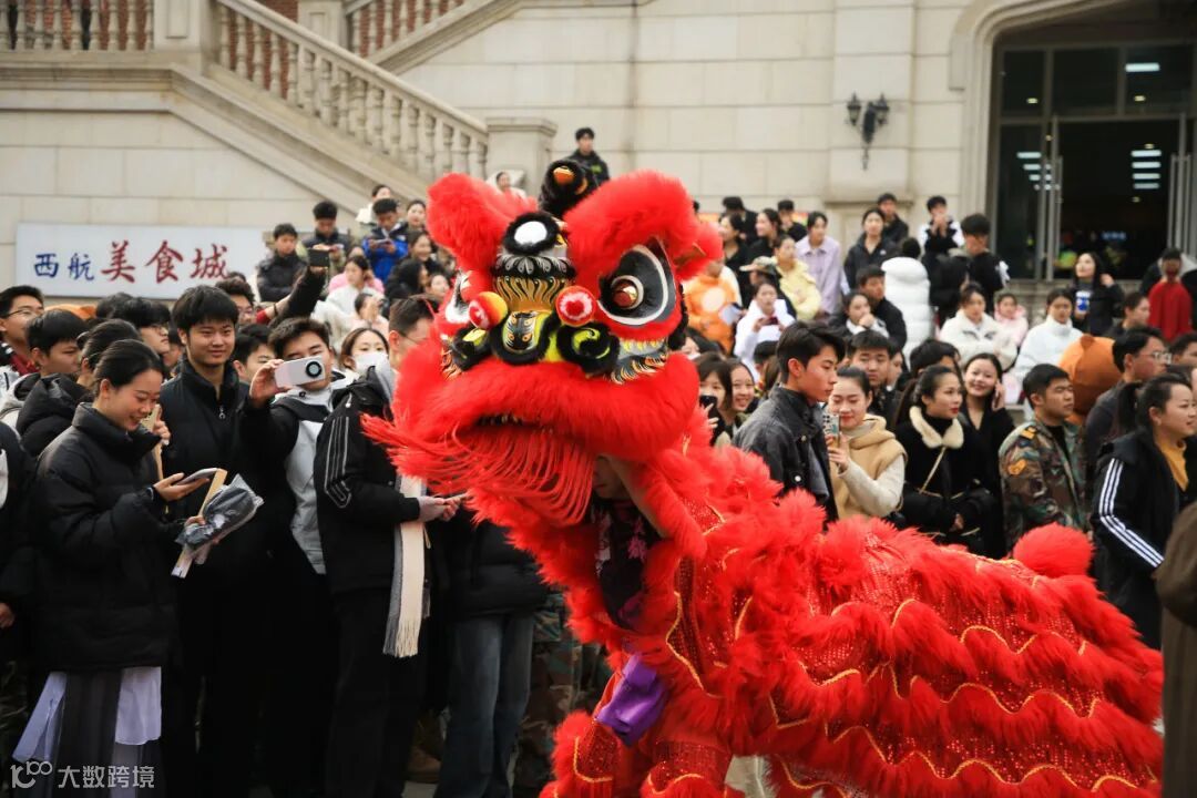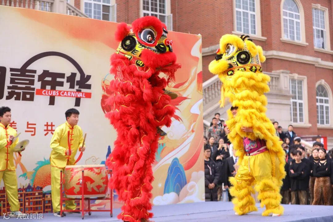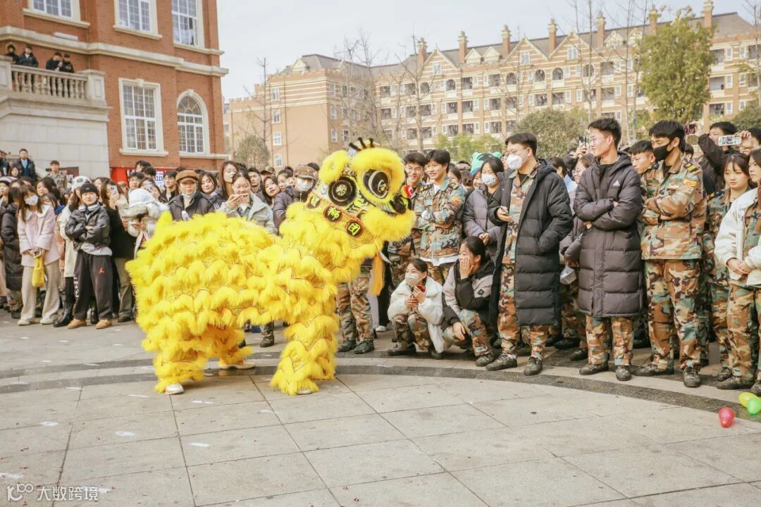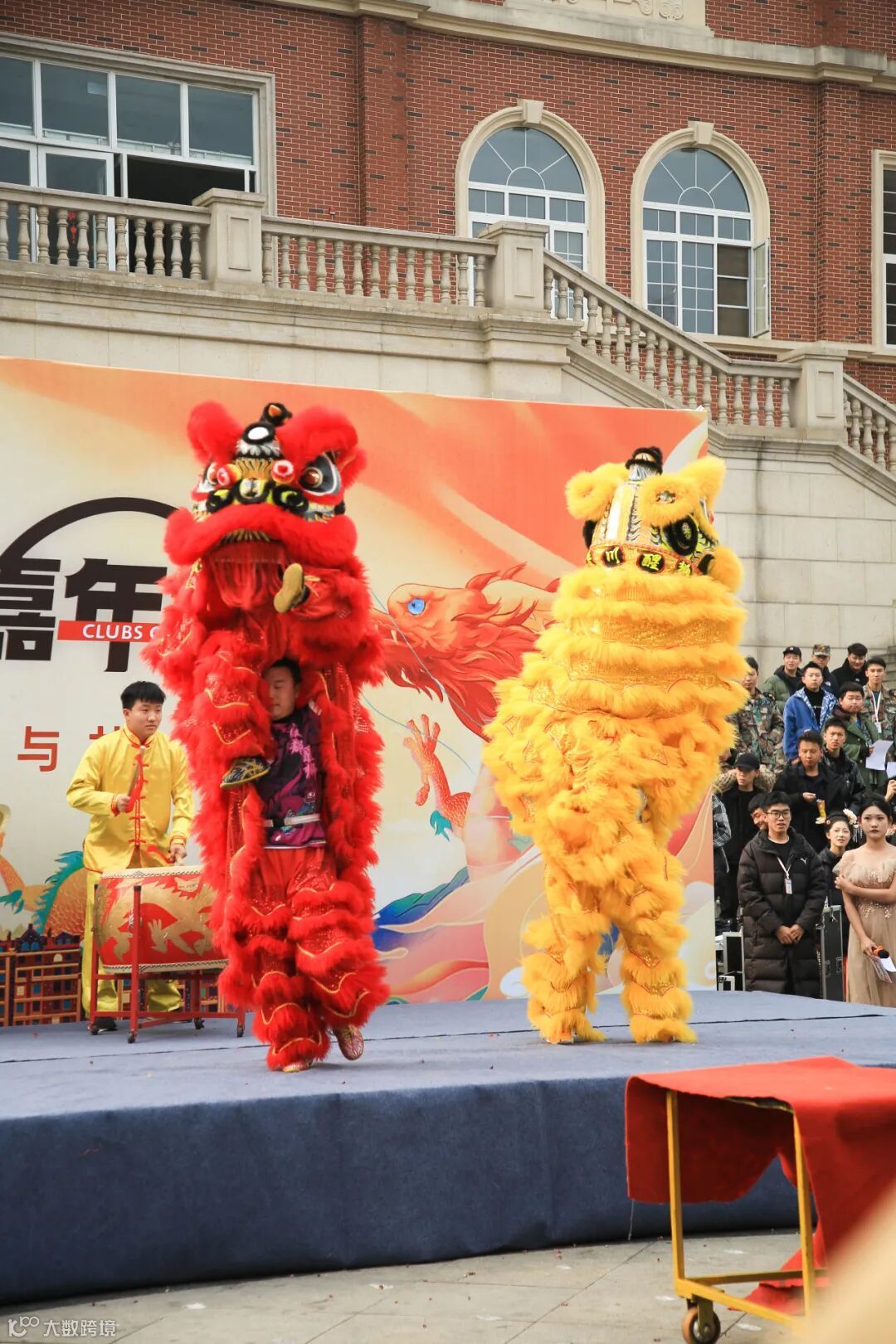仰头间,只见踩着高跷的同学们身着戏服,沉浸角色间,表情活灵活现;欢呼中,只见双人舞狮展现着灵活的身姿,一跃一顿,惟妙惟肖,喜庆气息扑面而来……