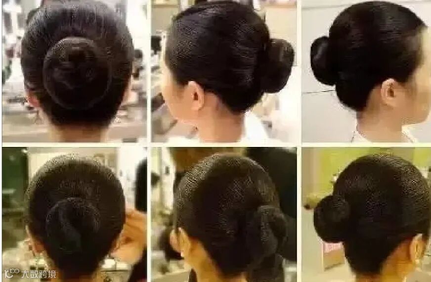 3、盘发发髻底部边缘不得低于耳根处,不得有散、碎发;