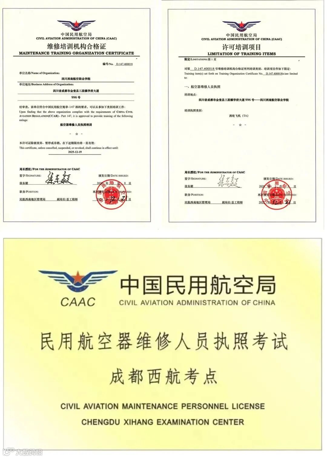 目前,西航已具备147部基础、机型、技能3种培训能力,获批准设立了CCAR-66部考点、机械行业能力评价考试站(机械行业能力评价四川666考试站,能完成电工、钳工、钣金、铆接等机械行业技能培训和考证)。同学们足不出户就能在校内考取66部基础执照和机械行业相关技能等级证书,为同学们考证提供更加便捷的条件,大大缩短了时间。