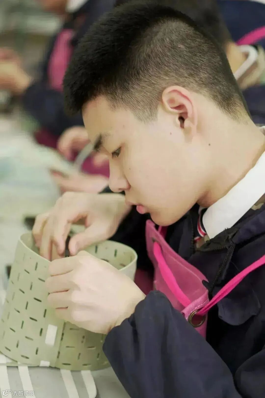 系着粉色小围裙的男生们