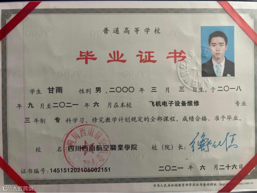 在知识储备量和专业技能不断提升的过程中,甘雨将学历提升提上日程,“随着社会的发展和竞争的加剧,高学历已经成为了许多行业求职的必备条件。由此,为了增强自己的竞争力,我便选择了自考本。”借着西航提供的平台,他报考了中国民用航空飞行学院,并顺利通过答辩,拿到本科“通行证”。