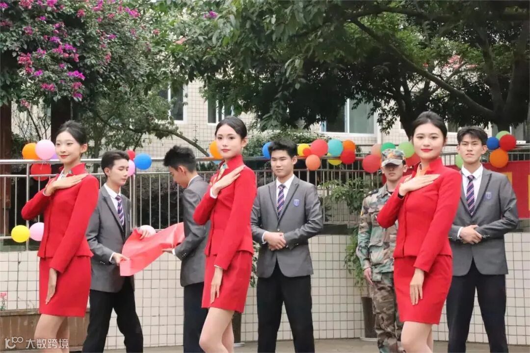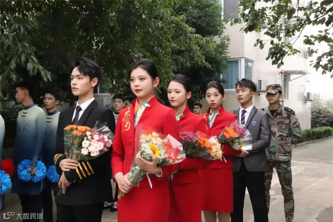 礼仪展示环节,同学们着正红色的职业装,用自信的姿态和明媚的笑容展现出了学校的航空文化,传递着积极向上的生活态度和价值观。
