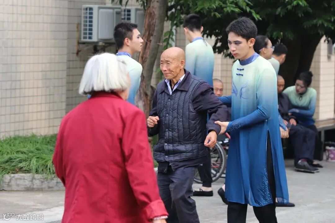 表演结束,志愿服务者们又到老人们的身边陪他们闲谈、娱乐,院里到处都是欢声笑语,相机“咔嚓咔嚓”,定格下一张张动人瞬间。