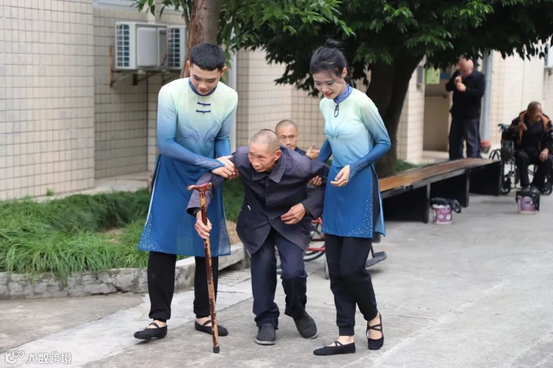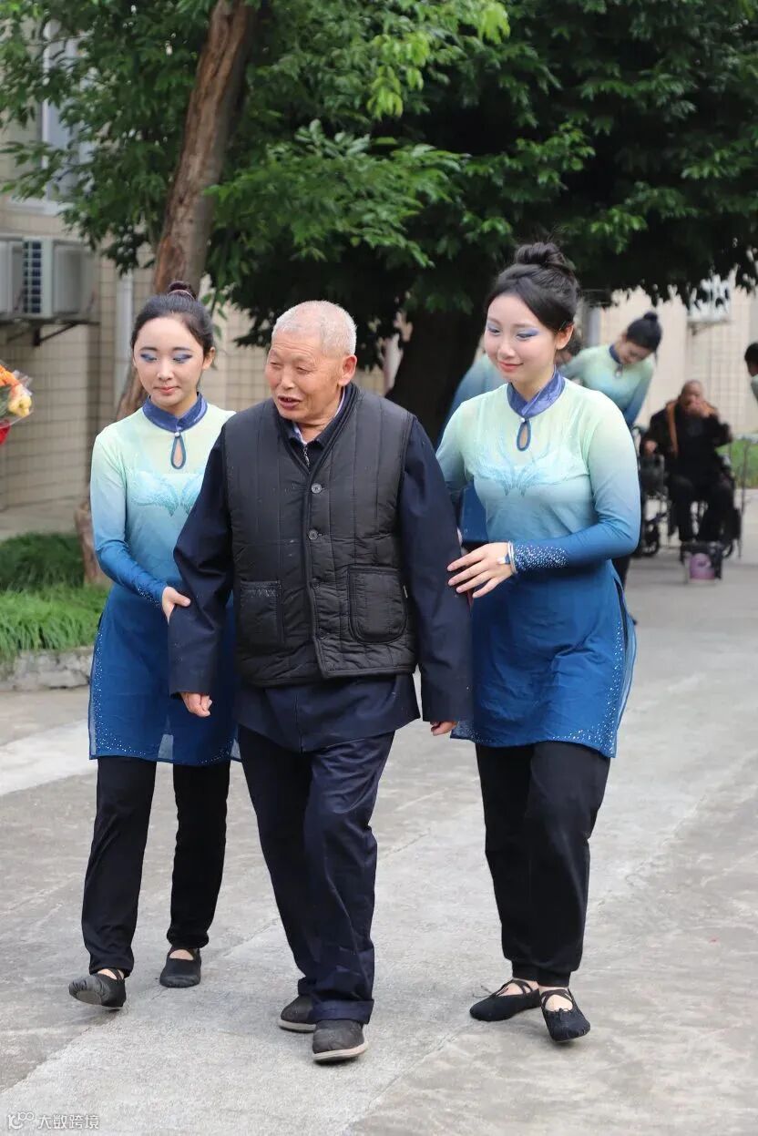 精彩的舞蹈表演彰显激情与活力,为敬老院平静的生活注入满满活力。现场的老人举起手中旗帜与同学们一起互动,享受这温暖时光。