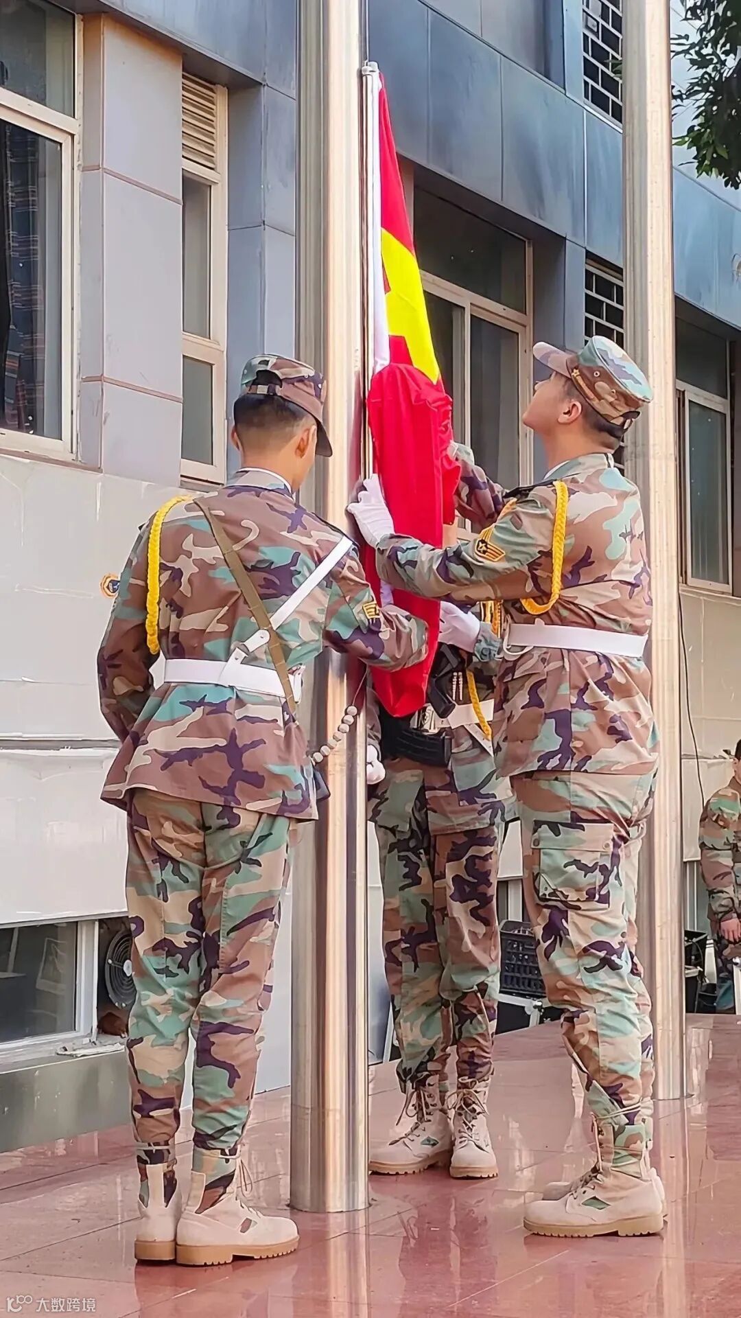 目光如炬,飒爽英姿,国旗护卫队,迈着铿锵有力的步伐缓缓入场。伴随着激昂的国歌,五星红旗冉冉升起,拉开了开学典礼的帷幕,新学期在嘹亮的国歌声中开启了新征程。