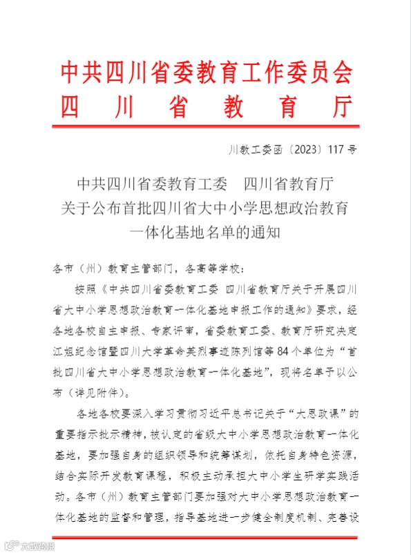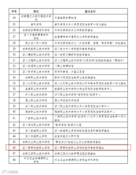 近日,四川省委教育工委、教育厅相关文件公布,我院“航空科普教育基地”成功获批首批四川省大中小学思想政治教育一体化基地。