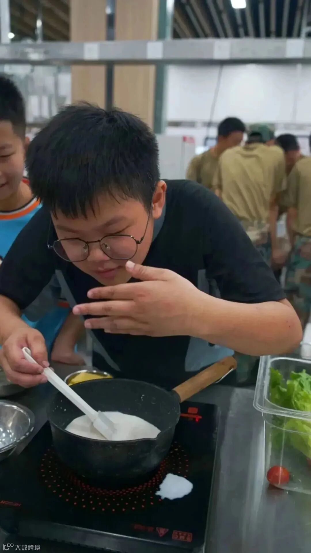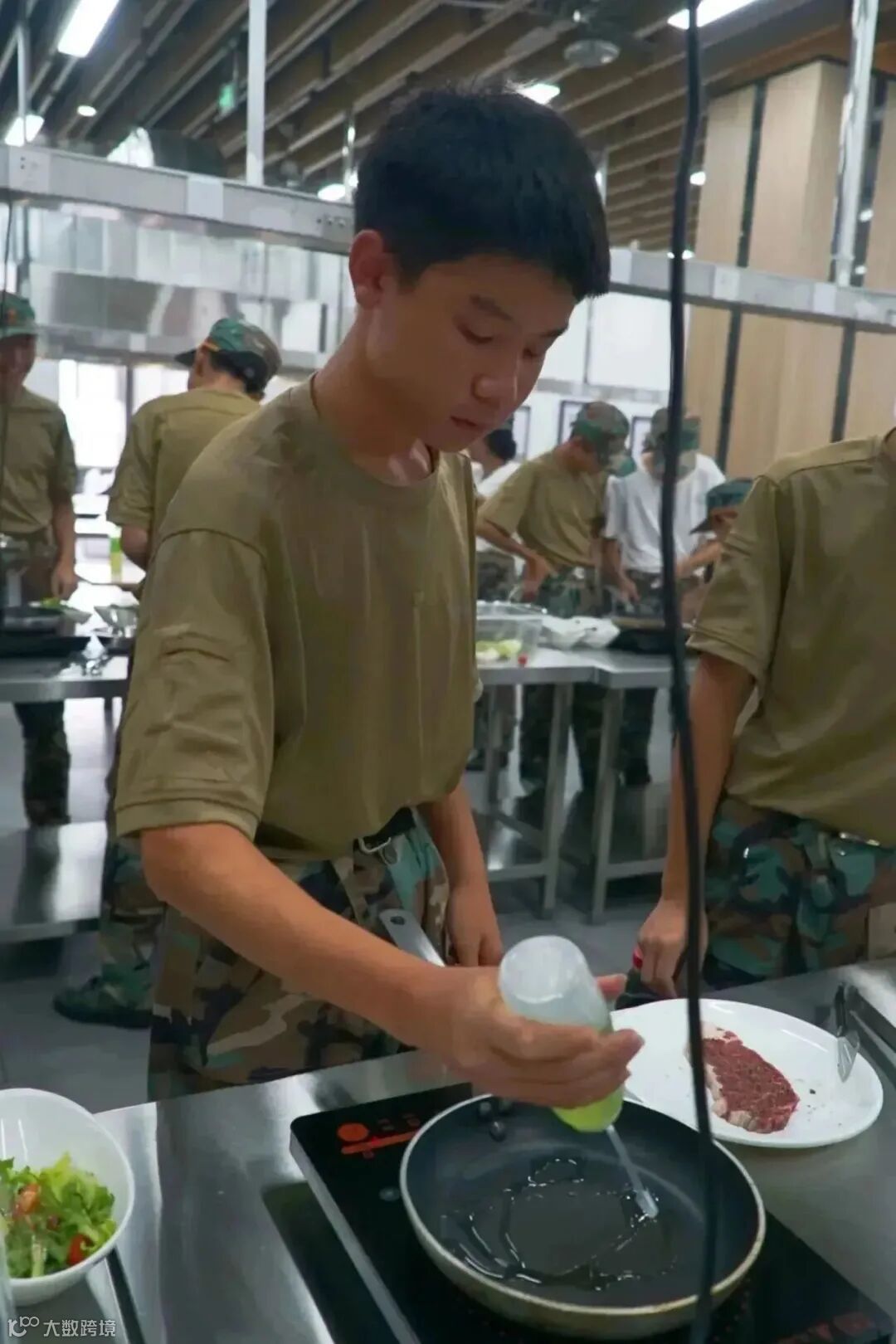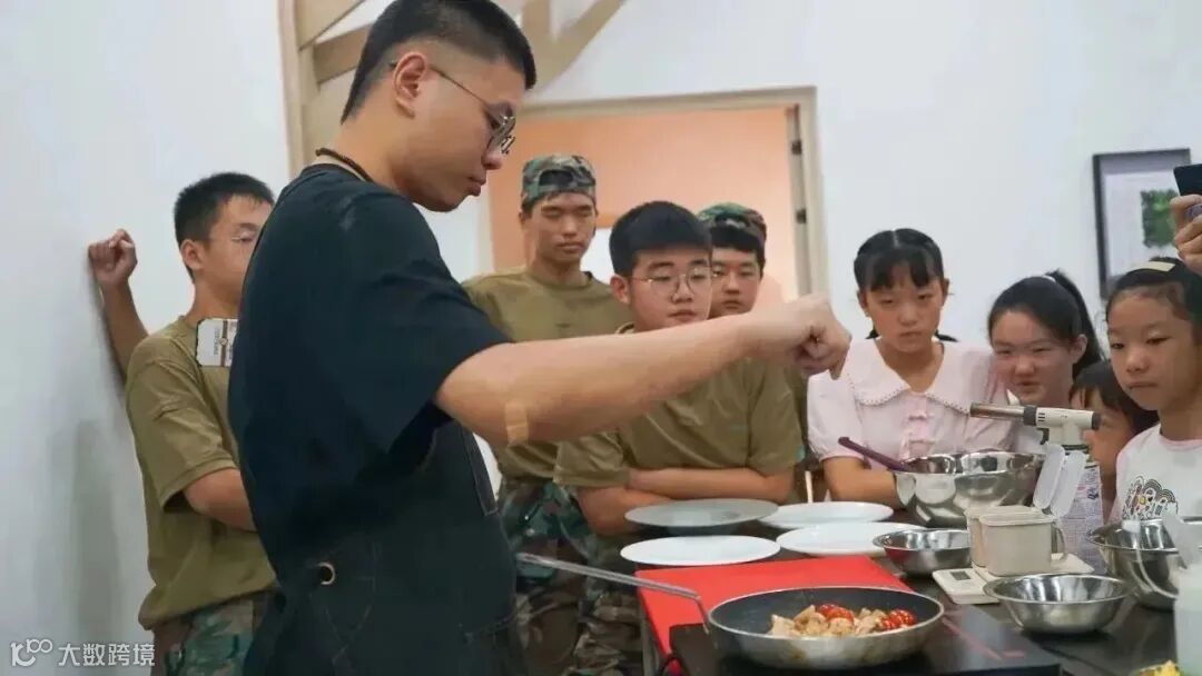 同学们都集中注意力认真学习大厨的讲解,紧跟老师节奏,了解基本的制作知识,并通过动手实践烹制出道道美食。打鸡蛋、称糖、切菜、调酱汁、煎牛排……当新鲜的牛排与香浓的黄油碰撞,那“滋滋”作响的声音叫作幸福,整个空气里都弥漫着浓郁的香味。