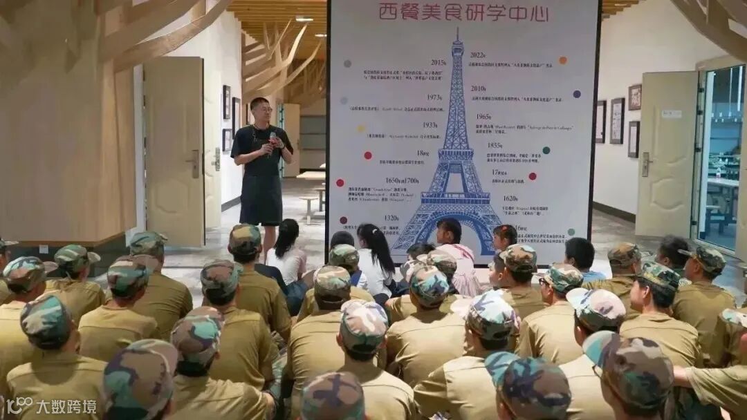 “大家知道法餐的发源地是哪里吗?”今天的法餐体验课由罗曼烹饪学校的三位大厨来为同学们授课,正式开始烹饪之前,大厨先为同学们介绍了法式西餐的相关知识和法国的美食文化,并将其与中国文化相结合,给同学们带来了一堂精彩的美食之旅。