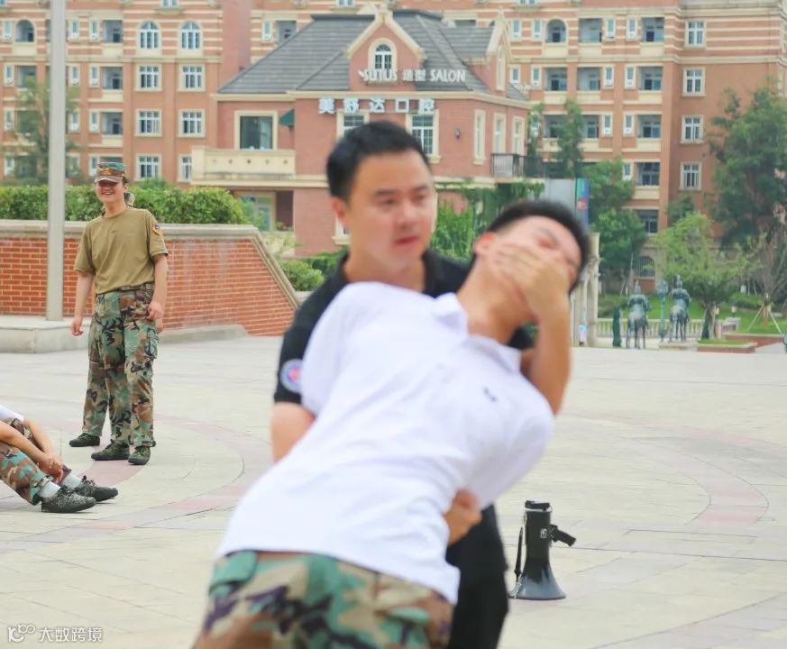 “第一步,是示弱,降低对方的警戒心……”教官邀请一位实习教官上场共同完成演示,从多个角度向同学们讲解动作细节,力求让每一位同学都能领悟动作要领。