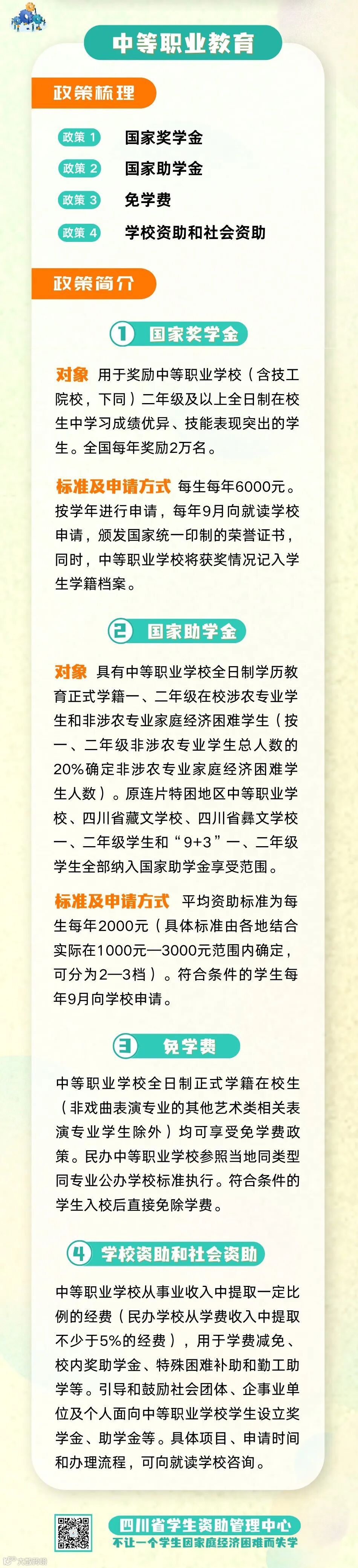 一图读懂!四川省2023年中职教育学生资助政策图解来了!