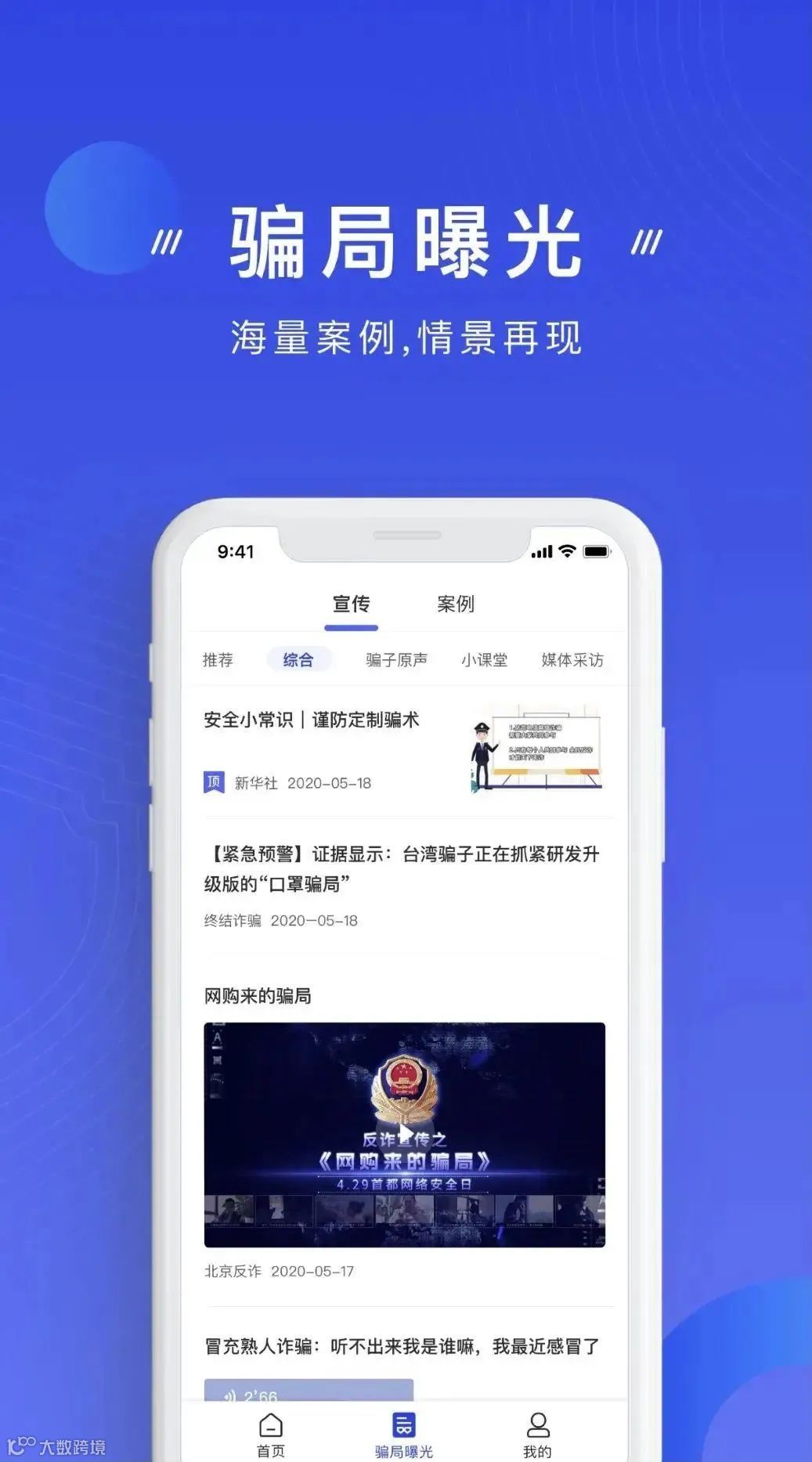 3.定期推送防诈文章,曝光最新诈骗案例,提高防骗意识。同时会根据不同年龄、职业等人群特点,测试被骗风险指数,防患于未然。