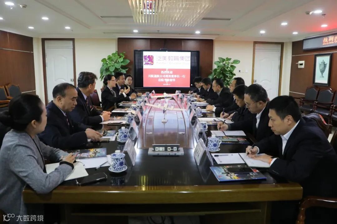 10月19日,四川通用航空投资管理有限责任公司(以下简称“川航通航公司”) 党总支书记、董事长周勇,总经理吴峰,副总经理朱皓宇等领导一行莅临我院参观交流,泛美教育集团董事、副总裁刘桦,四川西南航空职业学院党委书记岳文喜,泛美教育集团副总裁、四川西南航空职业学院副院长李灵,泛美通航集团总经理王钢等领导陪同参观交流。