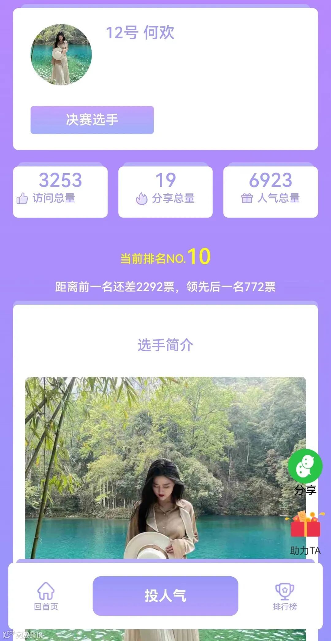 ■投票规则:每个微信号每天可投5次,每天可投同一选手5票。