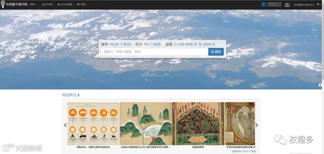 世界数字图书馆由联合国教科文组织在2009年启用,为世界读者提供免费使用的世界各地的地图、书籍、图片和手稿等珍贵历史资料。馆藏包罗万象,从图书到档案都有。