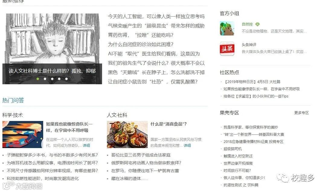 果壳网是一个泛科技主题网站,提供有趣、贴近生活的内容。在这里,用户可以根据自己的兴趣关注不同的小组,阅读有趣的科技内容;也可以在“果壳问答”里提各种科技问题或者贡献优质回答。