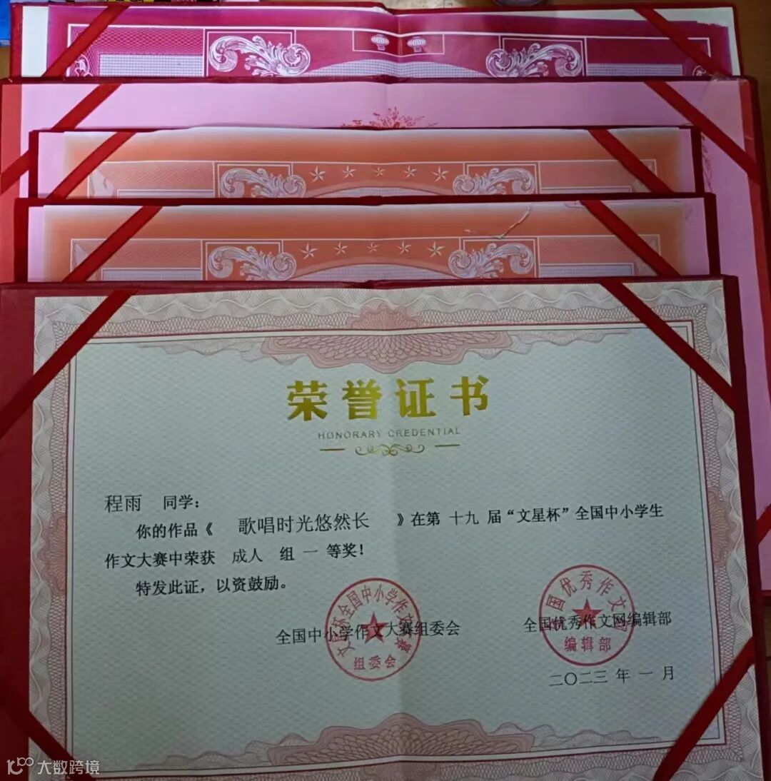 2020年获“文星杯”国家级征文比赛高中组一等奖;