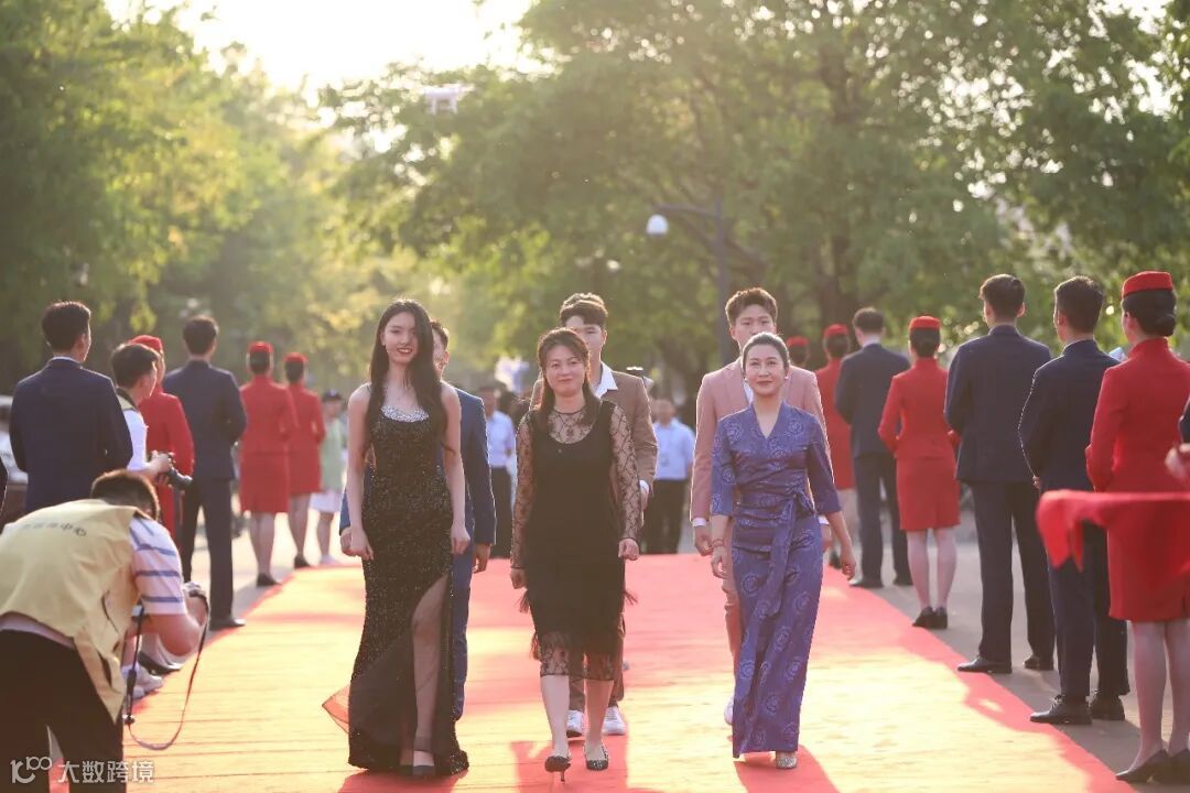 伴随着音乐响起,作为重磅嘉宾,西航优秀毕业生在学院院长、教授们的陪同下,一起走上红毯,热情氛围、高定礼仪、签到墙一齐上阵,现场仪式感满满。