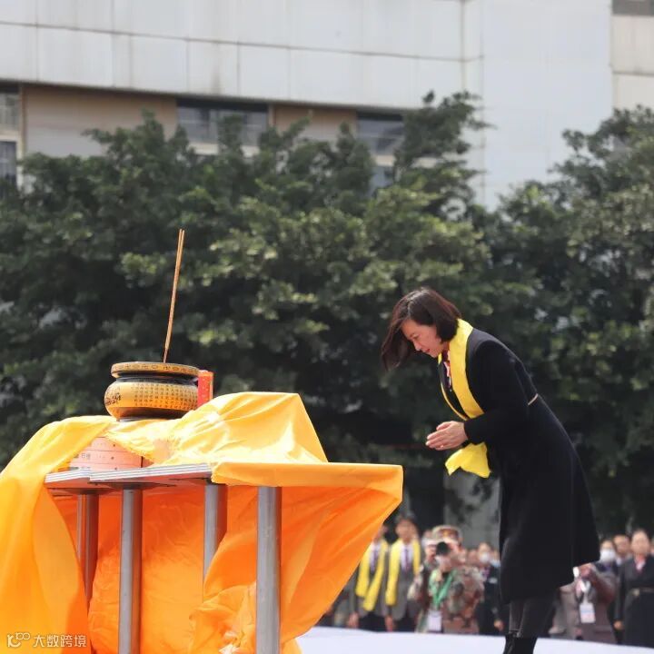 成都泛美航空旅游中等职业技术学校校长陈敏女士在祭祀会场代表全体师生净手上香,祭祀我们的远古祖先。