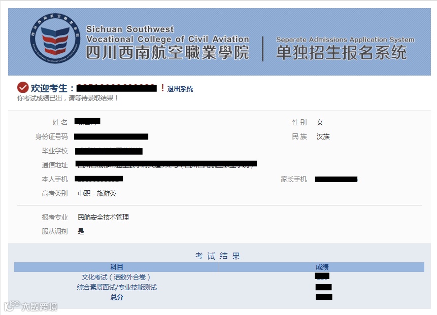 2.如对成绩有疑问的同学,可在3月30日16:00前由本人携带身份证及准考证至四川西南航空职业学院招生处一楼111办公室申请成绩复核;